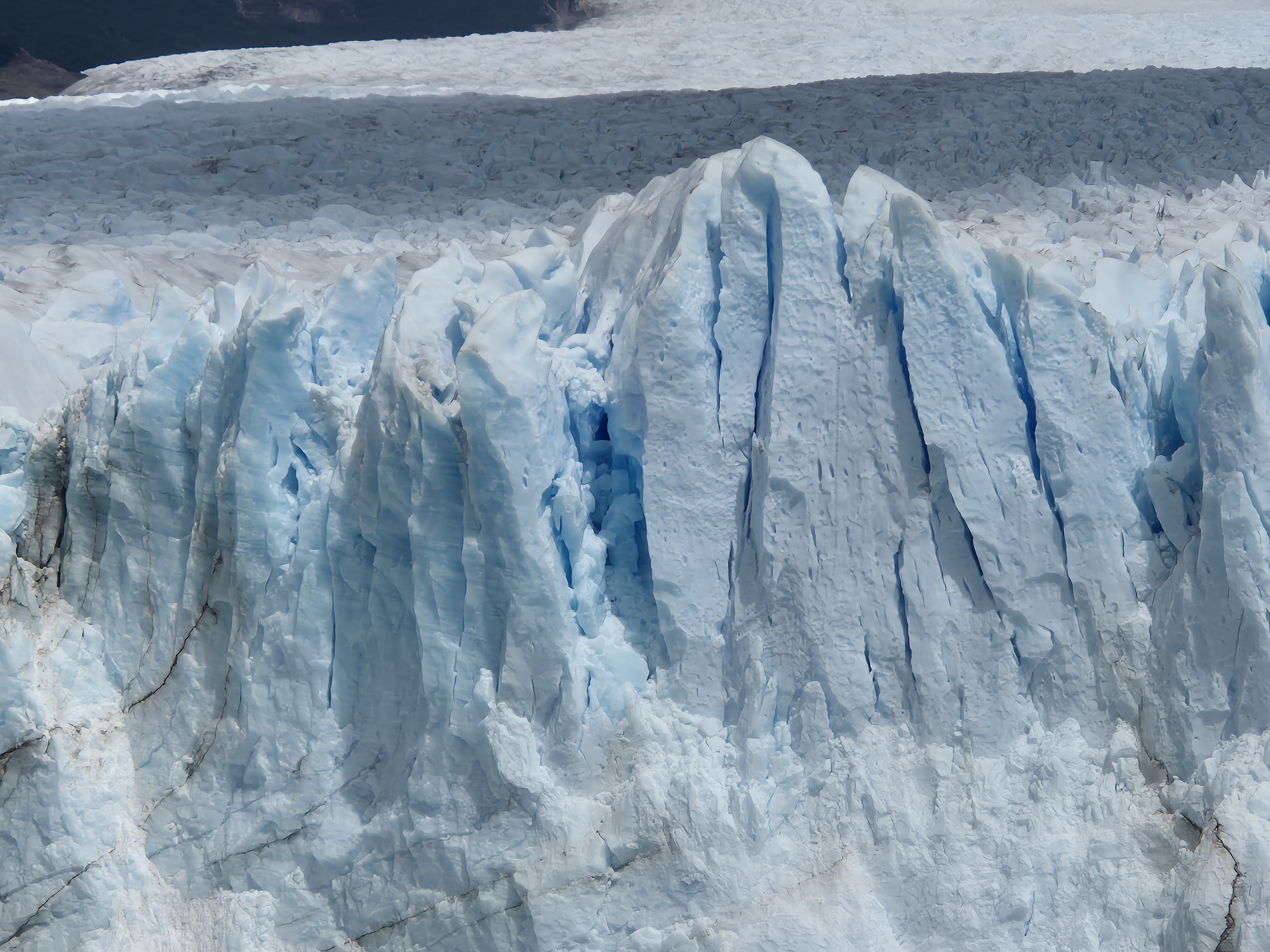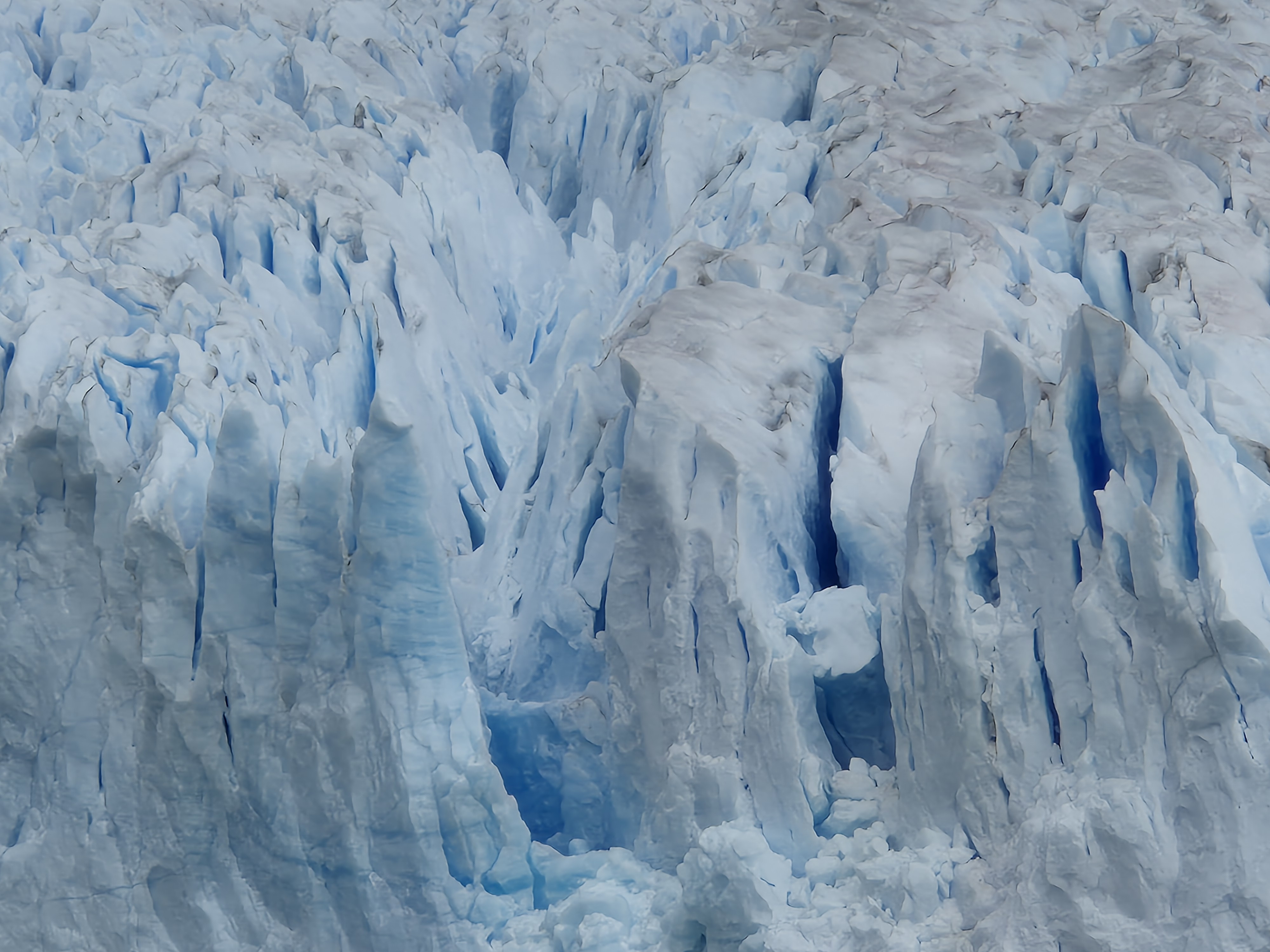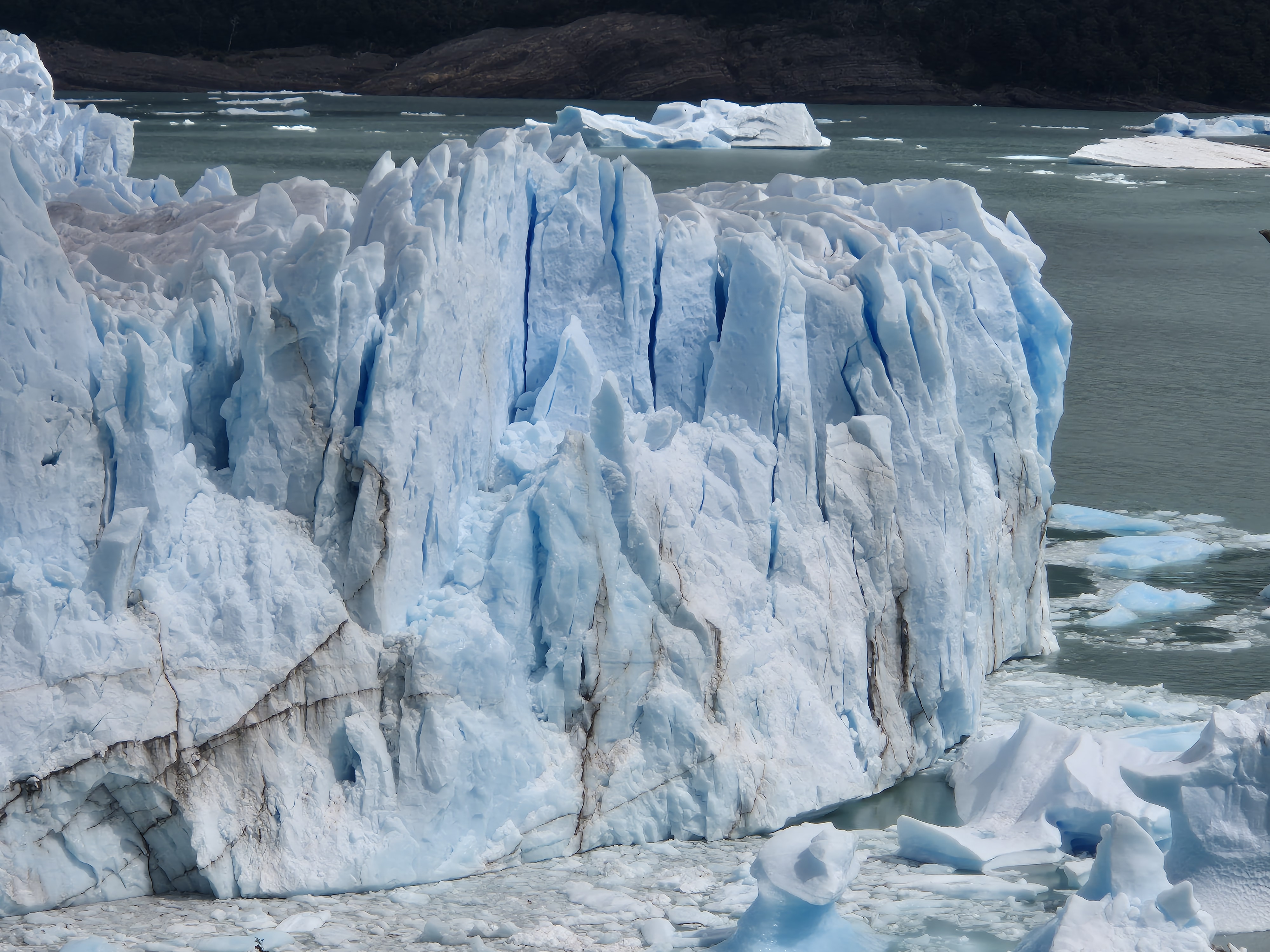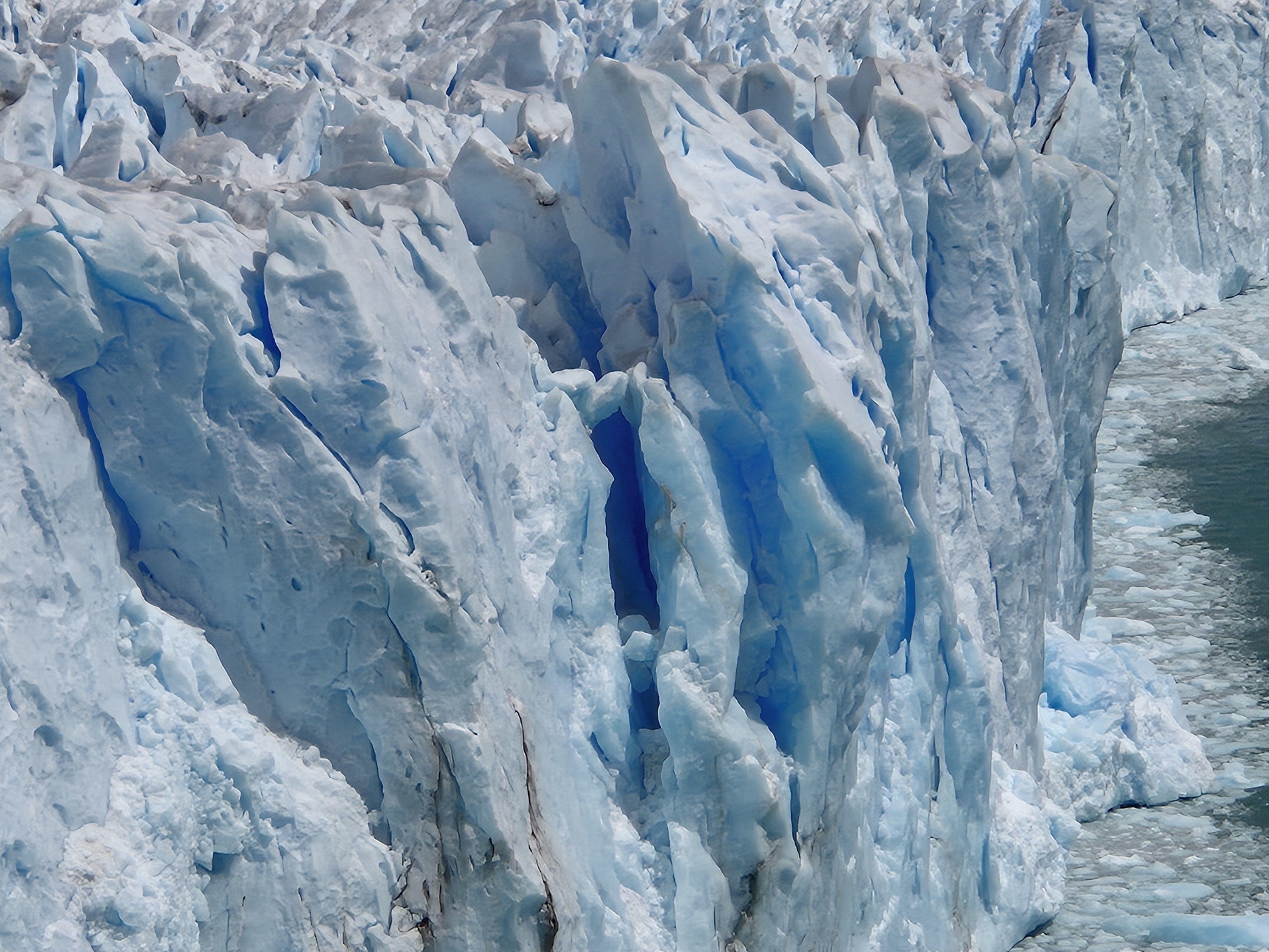 파타고니아 엘 칼라파테 페리토 모레노 빙하를 버스 터미널에서 버스를 타고 직접 찾아 갔다. 어제 터미널에서 현금으로 40,000페소(카드는 45,000페소) 주고 버스표를 예매했다. 아침 8시 30분 하여 출발하여 10시 30분에 빙하에 도착하고 오후 2시 30분에 출발하여 돌아온다고 했다. 페리토 모레노 빙하에서 4시간의 시간이 주어지는데 빙하를 둘러 보기에는 시간이 충분했다. 데크로 길도 잘 만들어놓았고 빙하가 잘 보이는 곳에 전망대를 만들어 놓아 빙하를 보기 좋았다. 생각보다 가까이에서 빙하를 잘 볼 수 있었고, 위에서 빙하 전체를 볼 수 있어 좋았다. 빙하 위쪽은 구름이 끼어있어 약간 아쉬웠지만 빙하를 보기에는 부족함이 없었다. 대포소리를 내면서 떨어지는 빙하도 볼 수 있어 좋고, 작은 조각이 떨어져도 소리는 천둥치는 소리가 났다. 빙하의 거대함을 느낄 수 있었다.