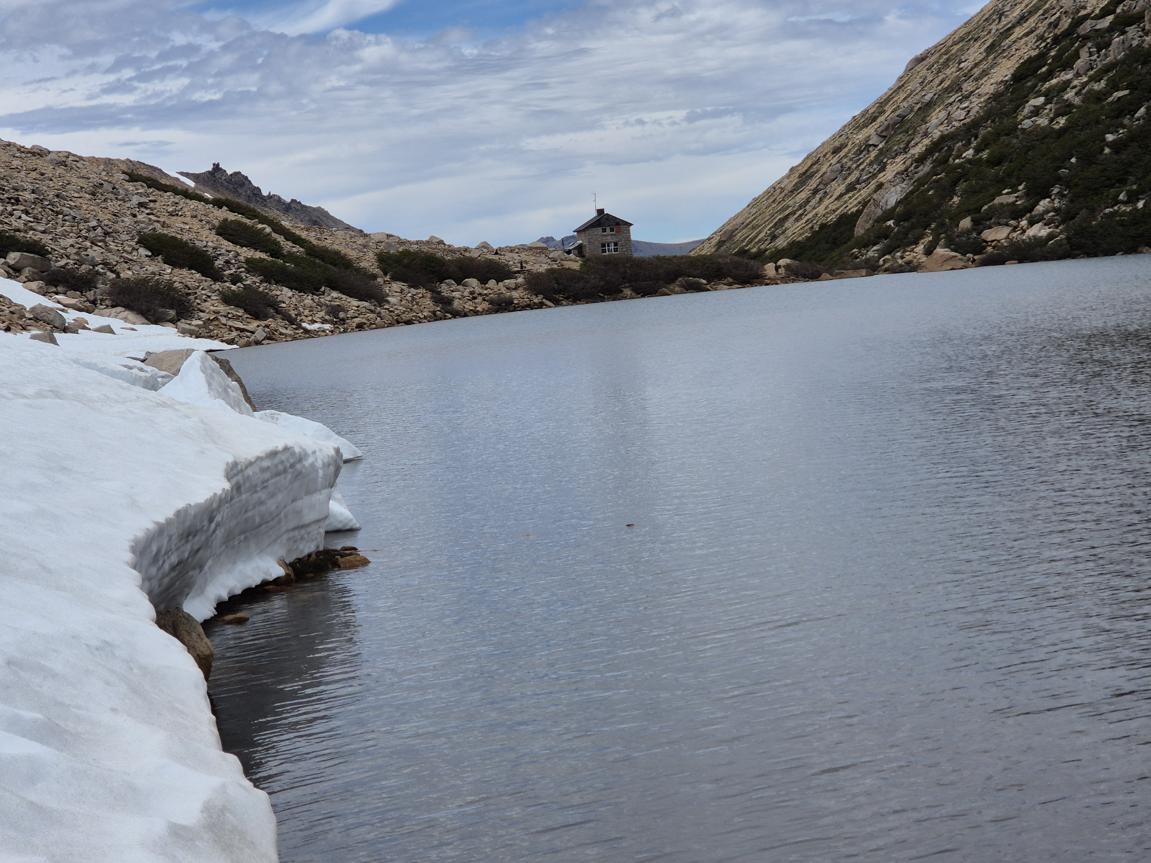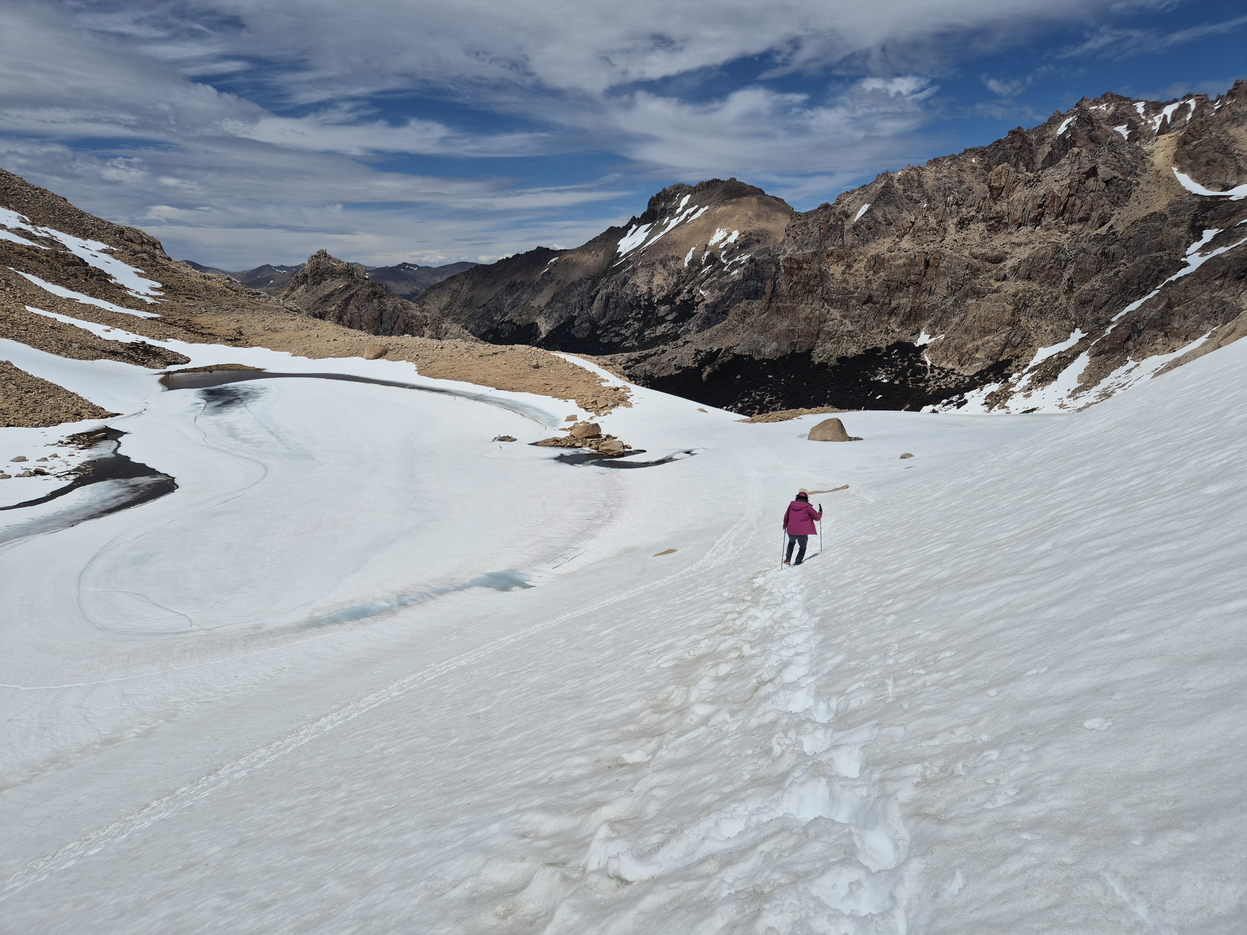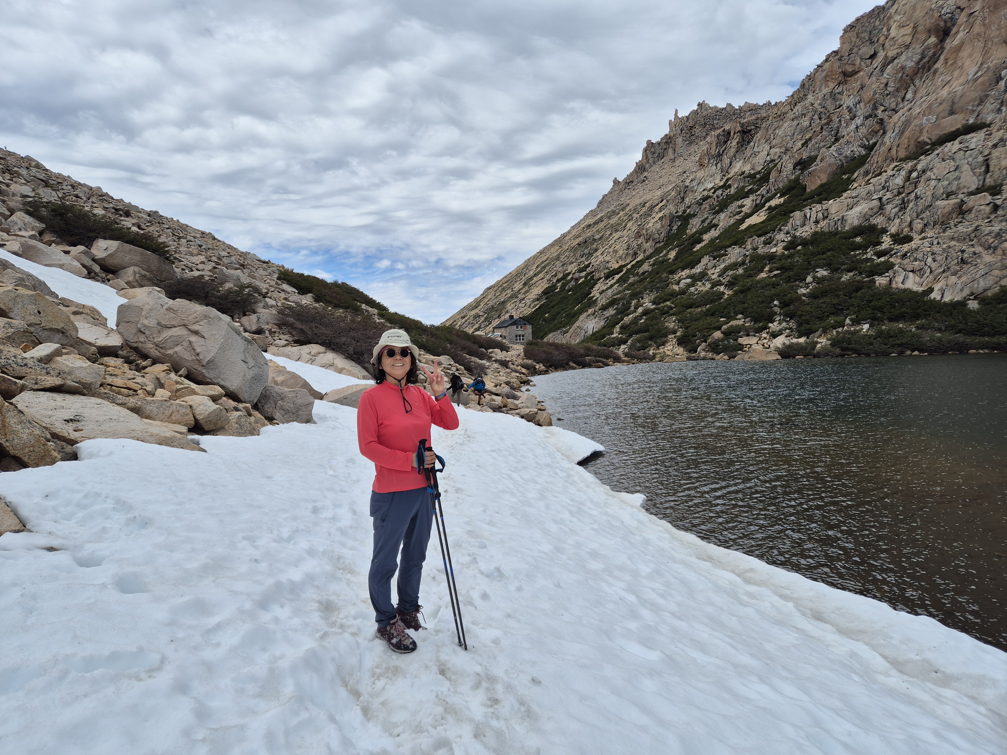 바릴로체 시네에서 55번 버스(5,500페소) 9시 15분에 타고 카테드랄 마을에 갔다 버스는 2시간 간격으로 다닌다. 케이블카(30,000페소) 를 타고 프린세사에 올라 트레킹을 시작했다. 생각보다 스키장이 엄청 컸다. 겨울철에도 한 번 와서 스키도 타고 활기찬 분위기를 느껴보고 싶었다. 케이블카는 여름철 비수기라 우리 둘만 타고 올라가고 트레킹을 하는 사람은 1명도 보이지 않았다. 대부분의 사람은 입구에서 계곡으로 가는 프레이 산장에 가서 다시 내려오는 왕복코스로 많이 하는것 같았다. 스키장 길을 걸어 윗 부분로 가니 눈이 덮여 있었고 능선으로 가야해서 올라갔다. 눈에 미끄러지면서 올라가니 프레이 산장 가는 길이 보였다. 어마무시한 절벽길이 눈앞에 펼쳐졌다. 발을 헛디디는 순간 사망 아니먄 종상이라 조심조심 걸음을 옮긴다. 바위에 그려진 파란색 동그라미를 보면서 길을 찾아 한발 한발 내디뎌 간다. 설악산의 용아장성을 생각나게 했다. 길을 찾아 열심히 걷다보니 어느새 프레이 산장과 산 마르틴 산장 갈림길이 나왔다. 왜 카테드랄이라 하는지 알 것 같은 뽀족 바위들이 저마다의 솜씨를 뽐내고 있었다. 파란 하늘과 흰 눈 그리고 뽀족 바위. 능선을 돌아서니 얼음 언 호수와 새하얀 눈 밭이 나왔다. 70도가 넘는 경사진 눈길을 조심조심 내려 오니 저멀리 호수와 프레이 산장이 보였다. 얼마나 반가운지. 프레이 산장에서 휴식을 취하고 6시 10분 버스를 타기 위해 열심히 내려왔다. 내려오는 길은 피곤하기도 하고 단순한 길이라 약간 지루하였다.