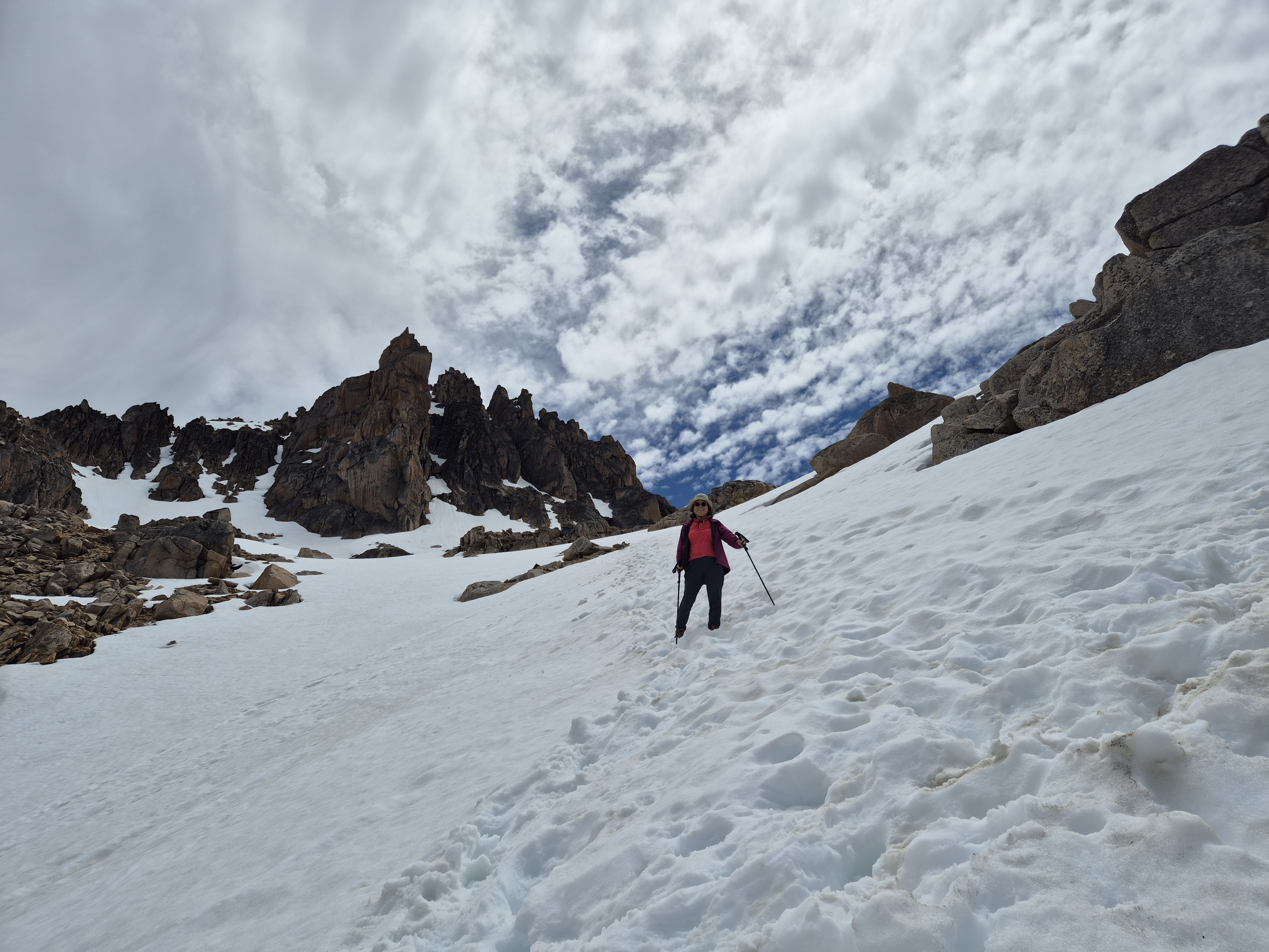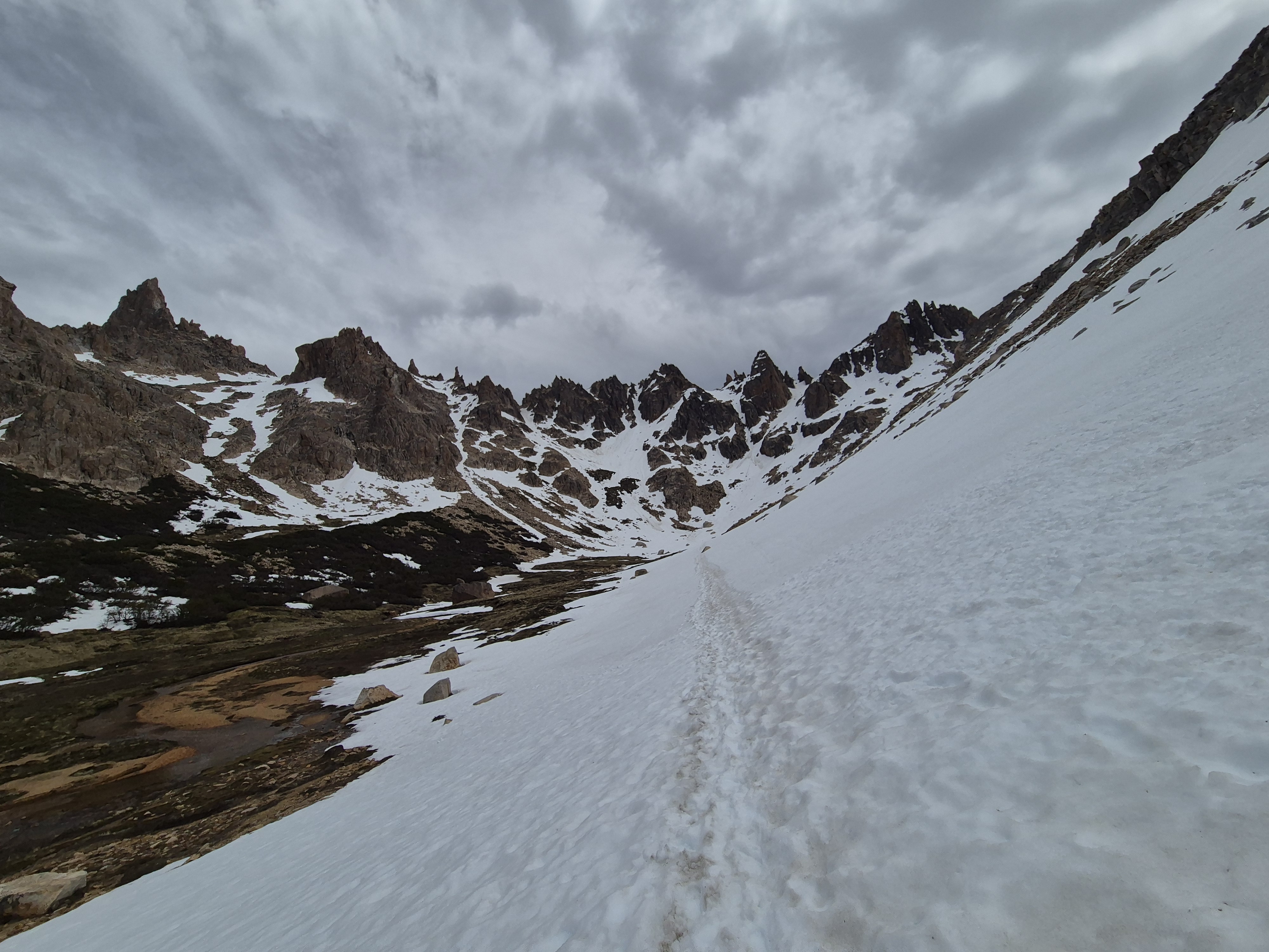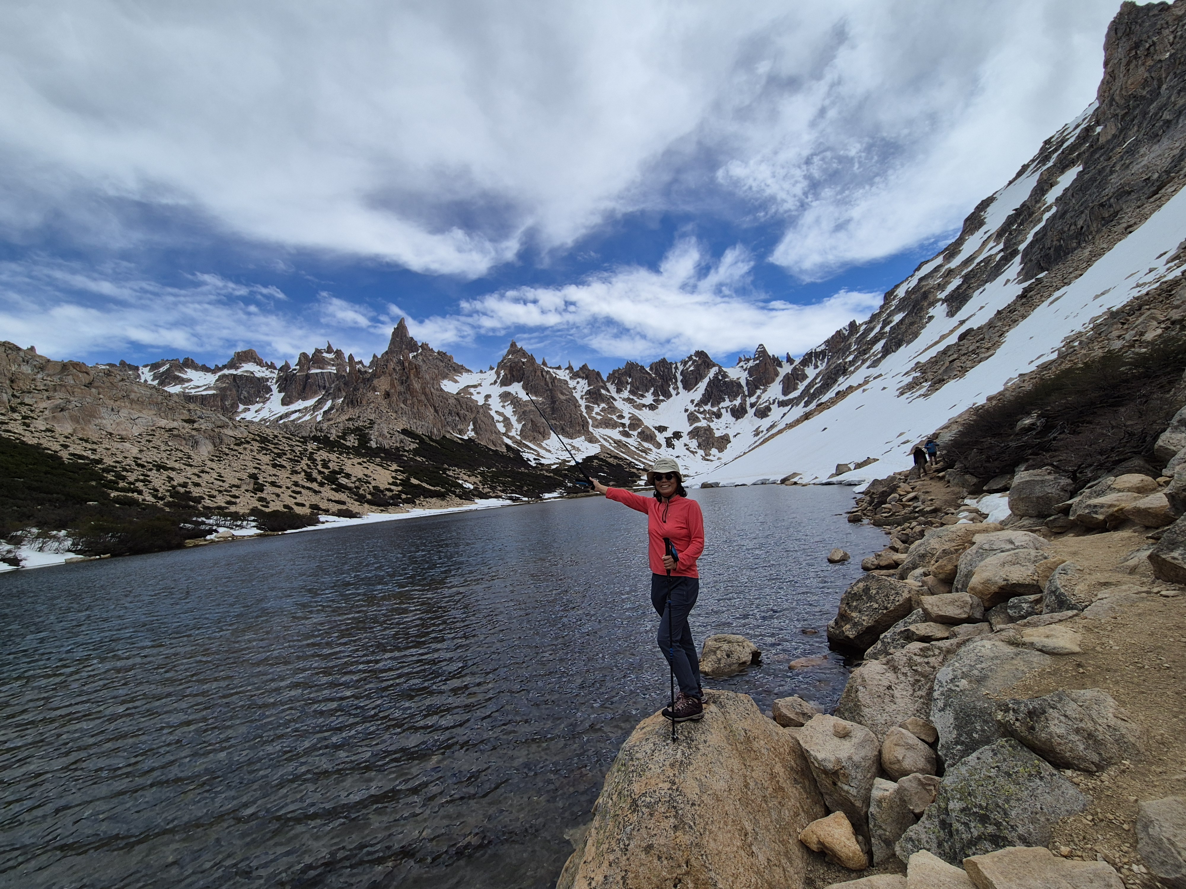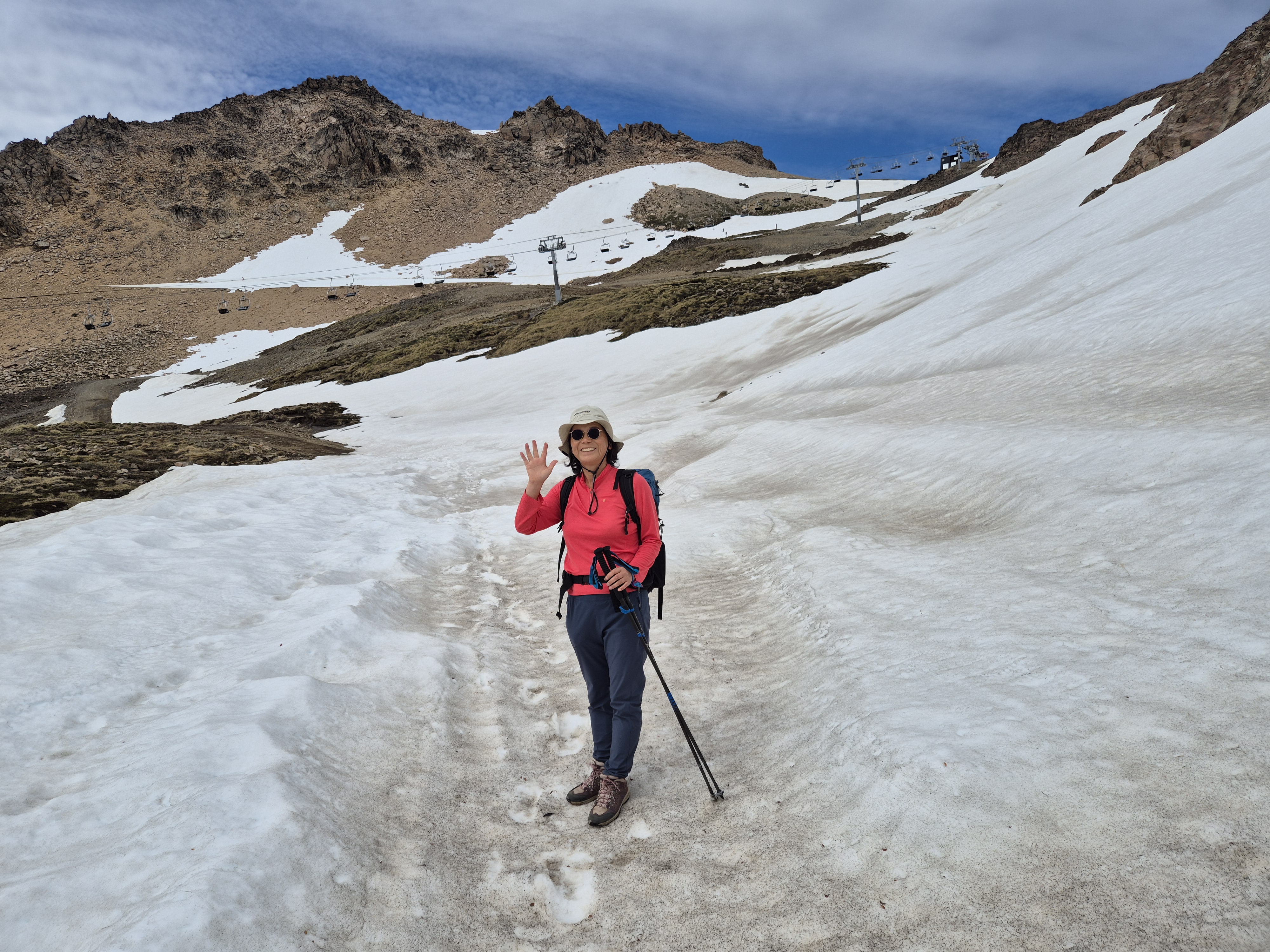 바릴로체 시네에서 55번 버스(5,500페소) 9시 15분에 타고 카테드랄 마을에 갔다 버스는 2시간 간격으로 다닌다. 케이블카(30,000페소) 를 타고 프린세사에 올라 트레킹을 시작했다. 생각보다 스키장이 엄청 컸다. 겨울철에도 한 번 와서 스키도 타고 활기찬 분위기를 느껴보고 싶었다. 케이블카는 여름철 비수기라 우리 둘만 타고 올라가고 트레킹을 하는 사람은 1명도 보이지 않았다. 대부분의 사람은 입구에서 계곡으로 가는 프레이 산장에 가서 다시 내려오는 왕복코스로 많이 하는것 같았다. 스키장 길을 걸어 윗 부분로 가니 눈이 덮여 있었고 능선으로 가야해서 올라갔다. 눈에 미끄러지면서 올라가니 프레이 산장 가는 길이 보였다. 어마무시한 절벽길이 눈앞에 펼쳐졌다. 발을 헛디디는 순간 사망 아니먄 종상이라 조심조심 걸음을 옮긴다. 바위에 그려진 파란색 동그라미를 보면서 길을 찾아 한발 한발 내디뎌 간다. 설악산의 용아장성을 생각나게 했다. 길을 찾아 열심히 걷다보니 어느새 프레이 산장과 산 마르틴 산장 갈림길이 나왔다. 왜 카테드랄이라 하는지 알 것 같은 뽀족 바위들이 저마다의 솜씨를 뽐내고 있었다. 파란 하늘과 흰 눈 그리고 뽀족 바위. 능선을 돌아서니 얼음 언 호수와 새하얀 눈 밭이 나왔다. 70도가 넘는 경사진 눈길을 조심조심 내려 오니 저멀리 호수와 프레이 산장이 보였다. 얼마나 반가운지. 프레이 산장에서 휴식을 취하고 6시 10분 버스를 타기 위해 열심히 내려왔다. 내려오는 길은 피곤하기도 하고 단순한 길이라 약간 지루하였다.