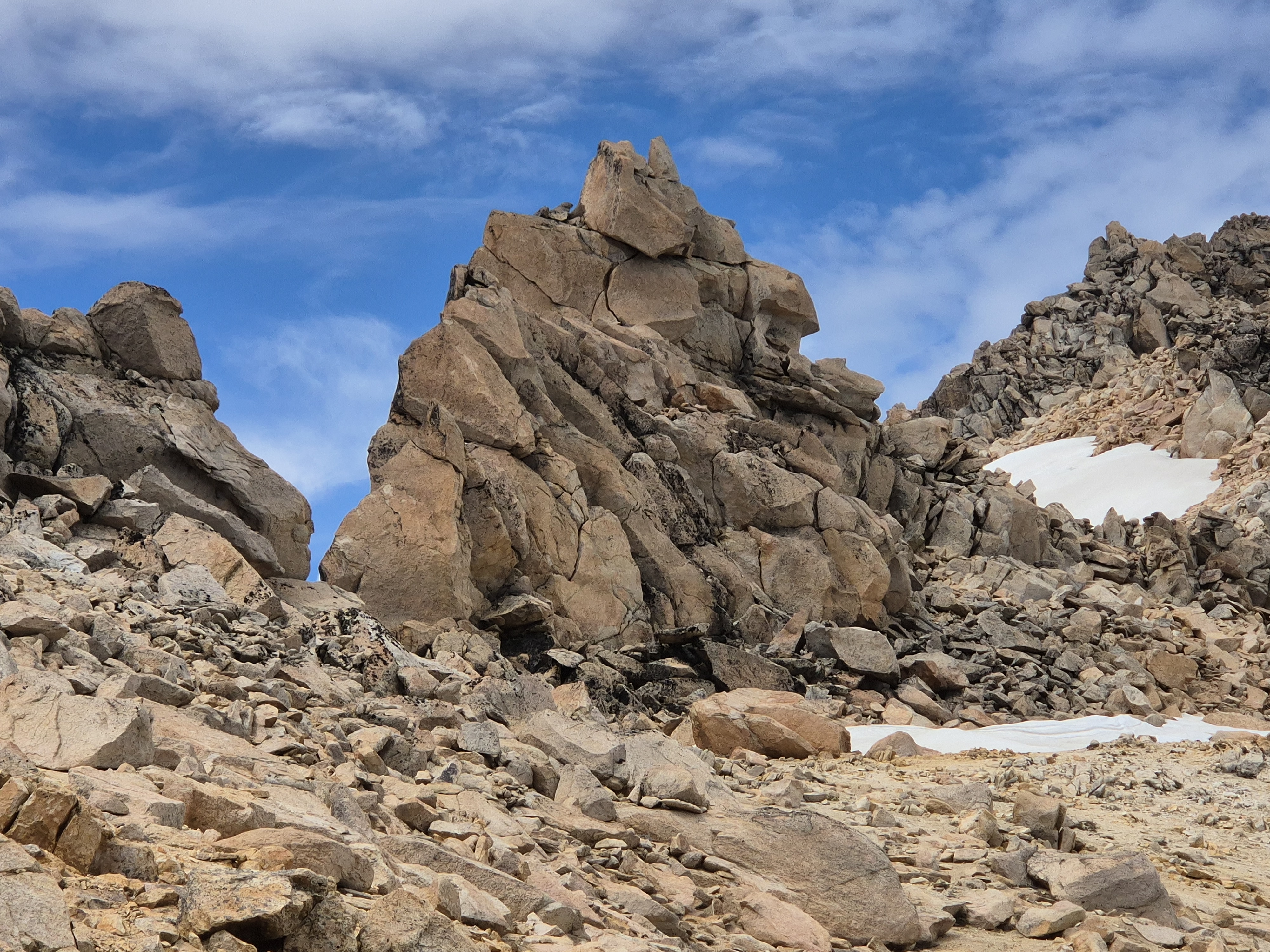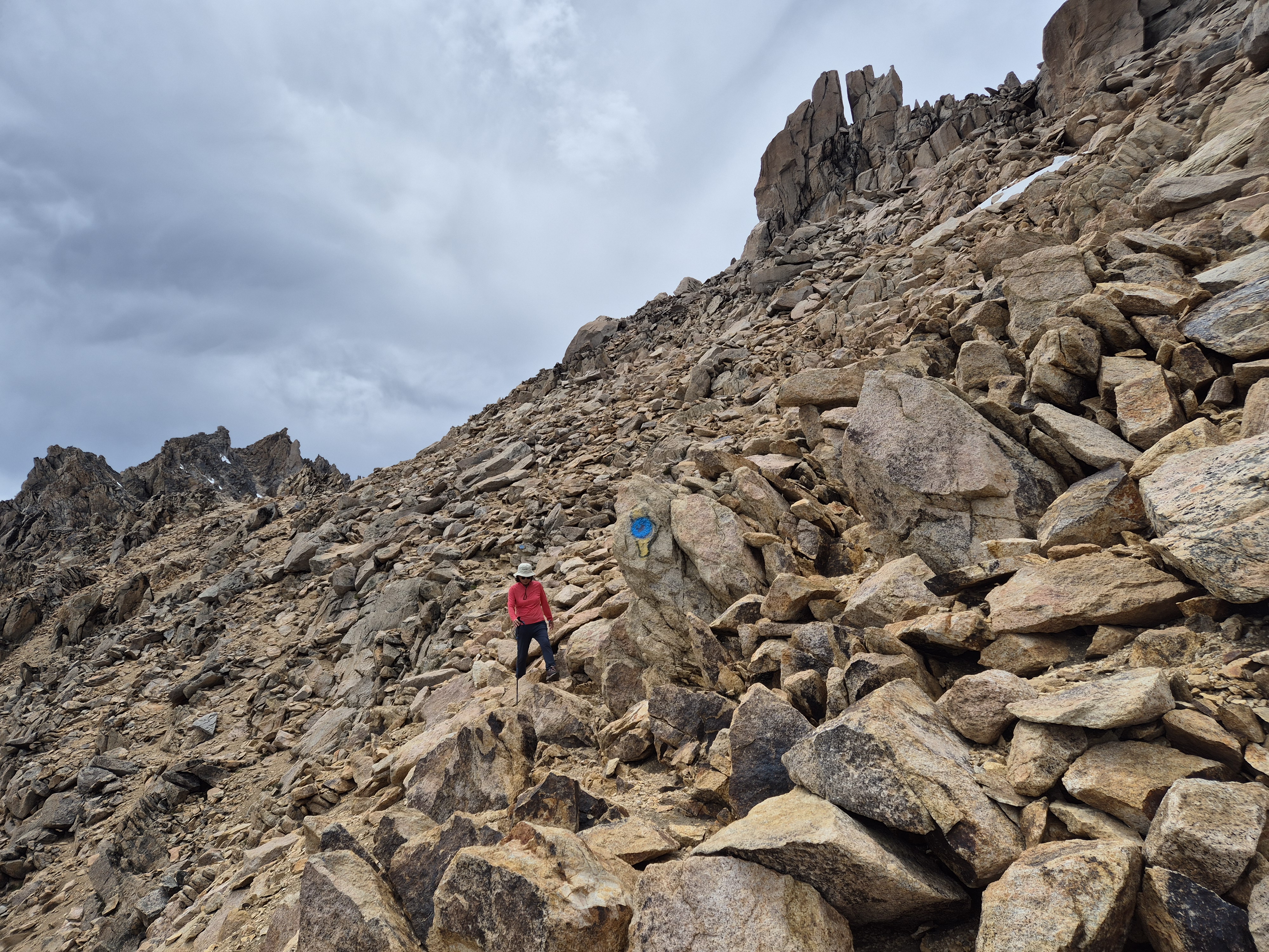 경사진 바위와 돌무더기 길이다