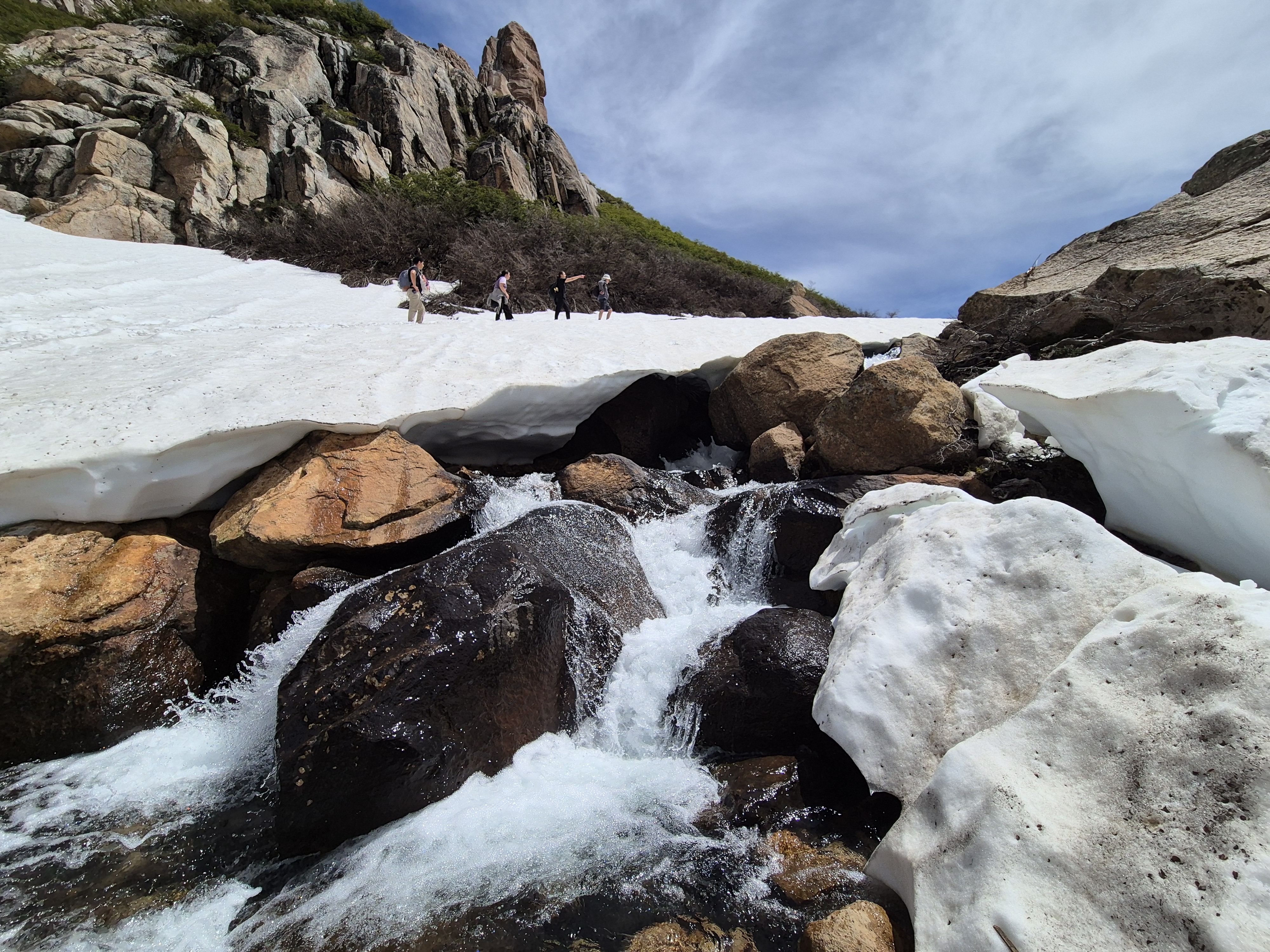 발의 피로를 위해 족욕도 할겸 맨발로 계곡을 건넌다. 계곡물은 눈녹은 물이라 엄청차다.