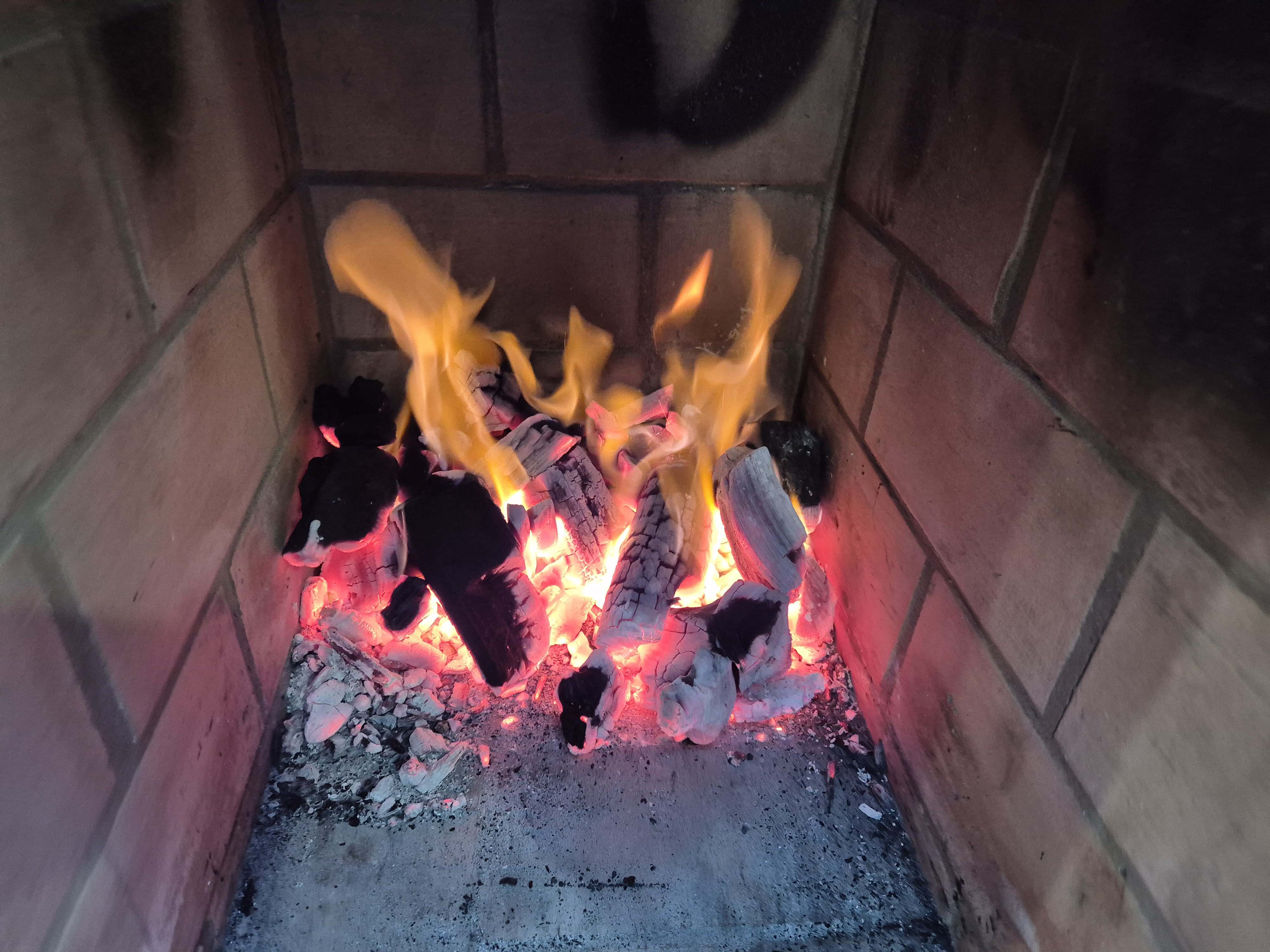 먼저 하양 숯불을 만들고 있다.