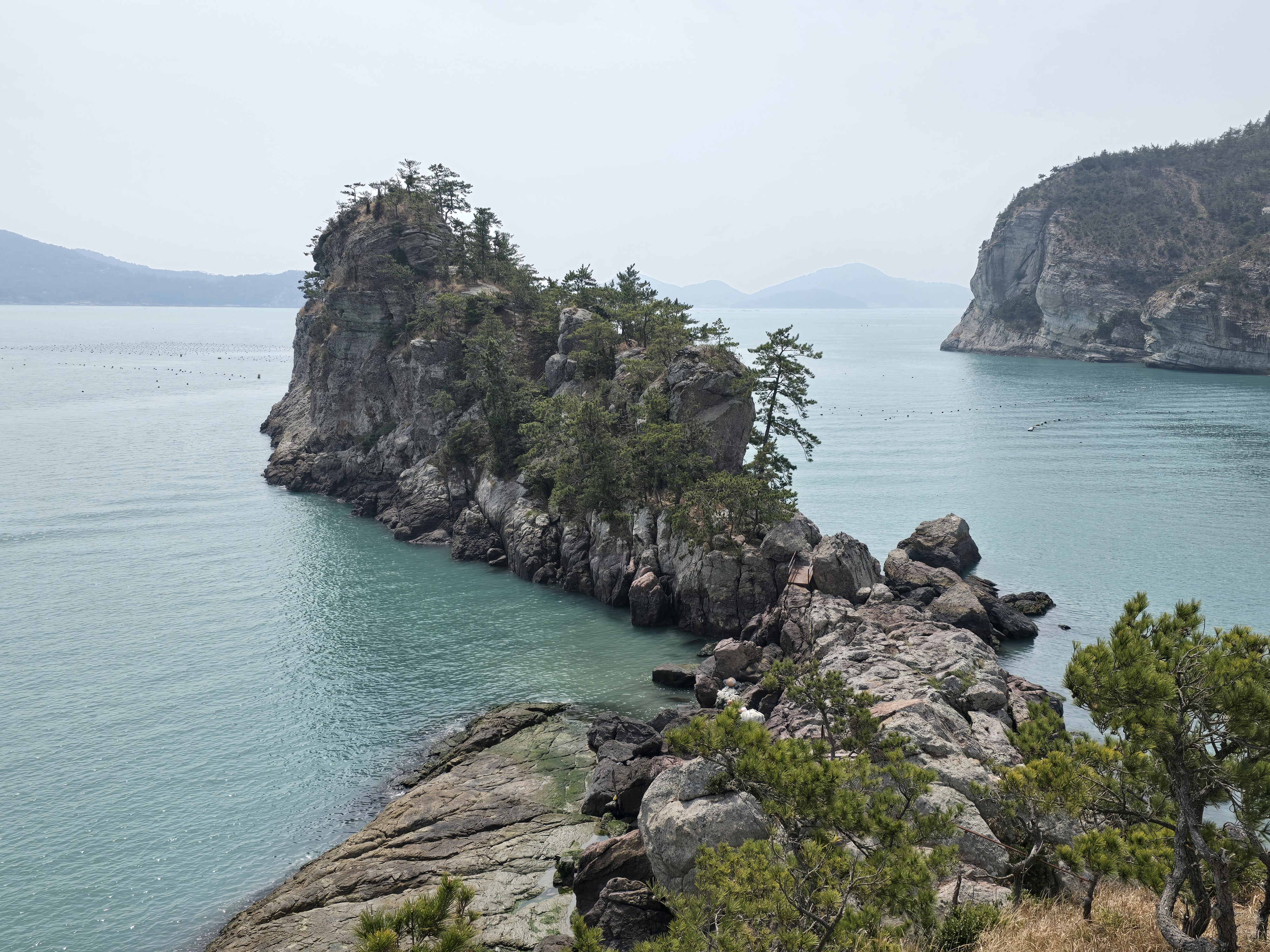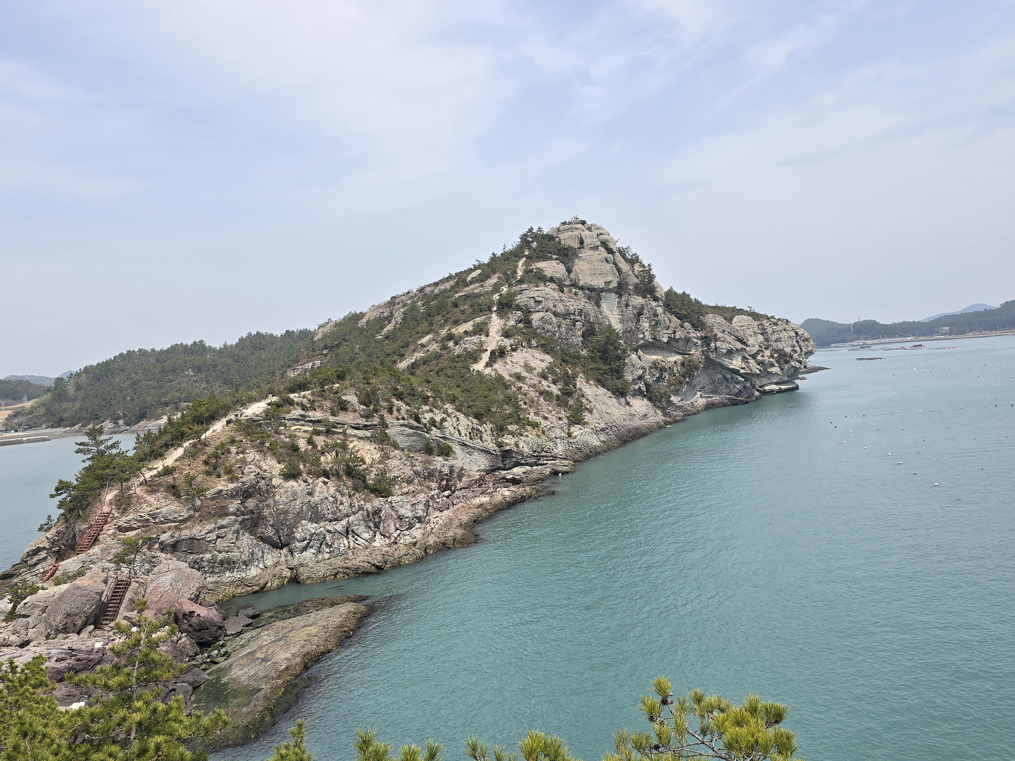 블랙야크 섬앤산100 인증을 위해 고흥 거금도우두항에서 배를 타고 금당도에 왔다. 9시에 출발하는 배를 타기 위해 인천 송도에서 새벽 3시에 출발해 5시간을 달려왔으나, 배는 15분을 타고 금당도 울포항에 내렸다. 울포항에서 택시(15,000원)를 타고 개기재에 가서 삼랑산에서 인증하고 다시 개기재로 돌아왔다. 1.5km라 편할 줄 알았는데 역시 섬 산이라 경사가 심하다. 길을 잘 다듬어 놓았고 바다 전망을 보면서 산행을 할 수 있고 바람이 시원하여 산행하기는 정말 좋았다. 율동 마을의 유채꽃과 동백꽃을 보면서 걸어왔다. 날씨가 추워 예쁘게 피지는 않았지만 넓은 면적에 날리는 노란색 꽃은 그야말로 봄날이었다.토요일(12일) 유채축제도 한단다. 금당 8경 중 백미라는 4경인 교암청풍을 구경했다. 명불허전이었다. 수우도 해골바위 확장판이었다. 이런 괴이한 바위 모습은 누가 만들었다 말인가?