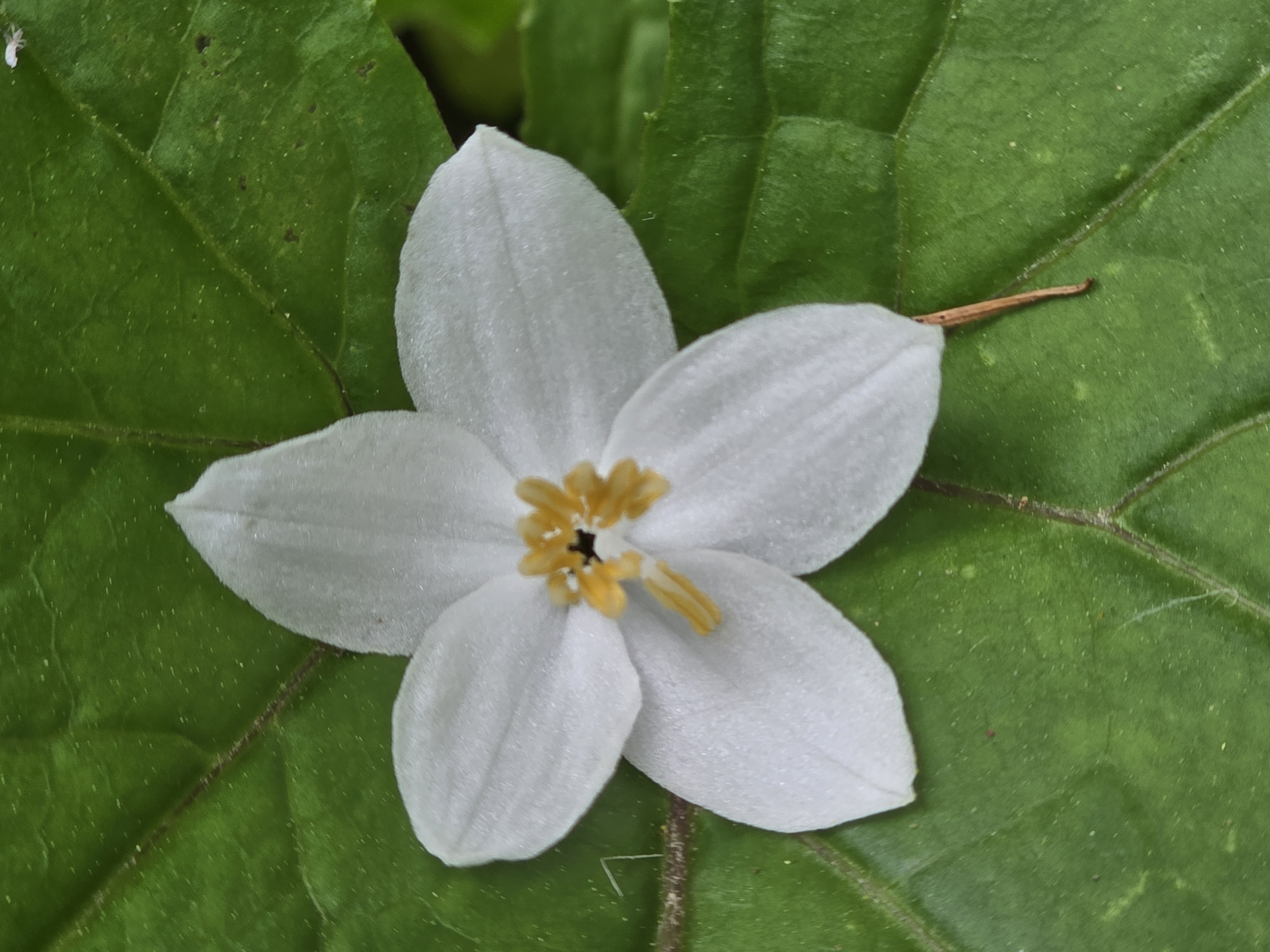 나뭇잎에 떨어진 때죽나무꽃