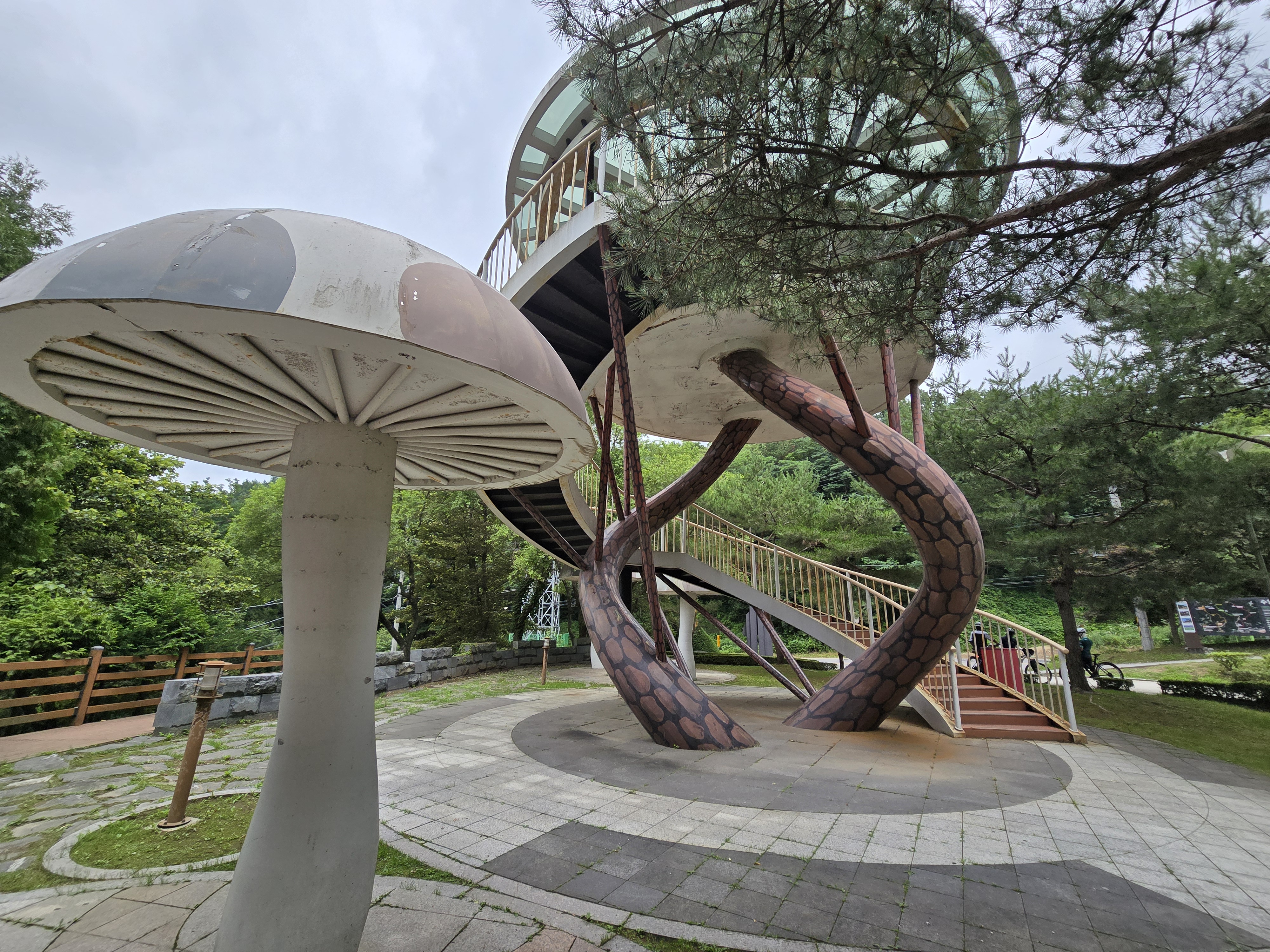 수원산 전망이 좋은데 이날은 구름이 가득하여 볼 수 없었다.
