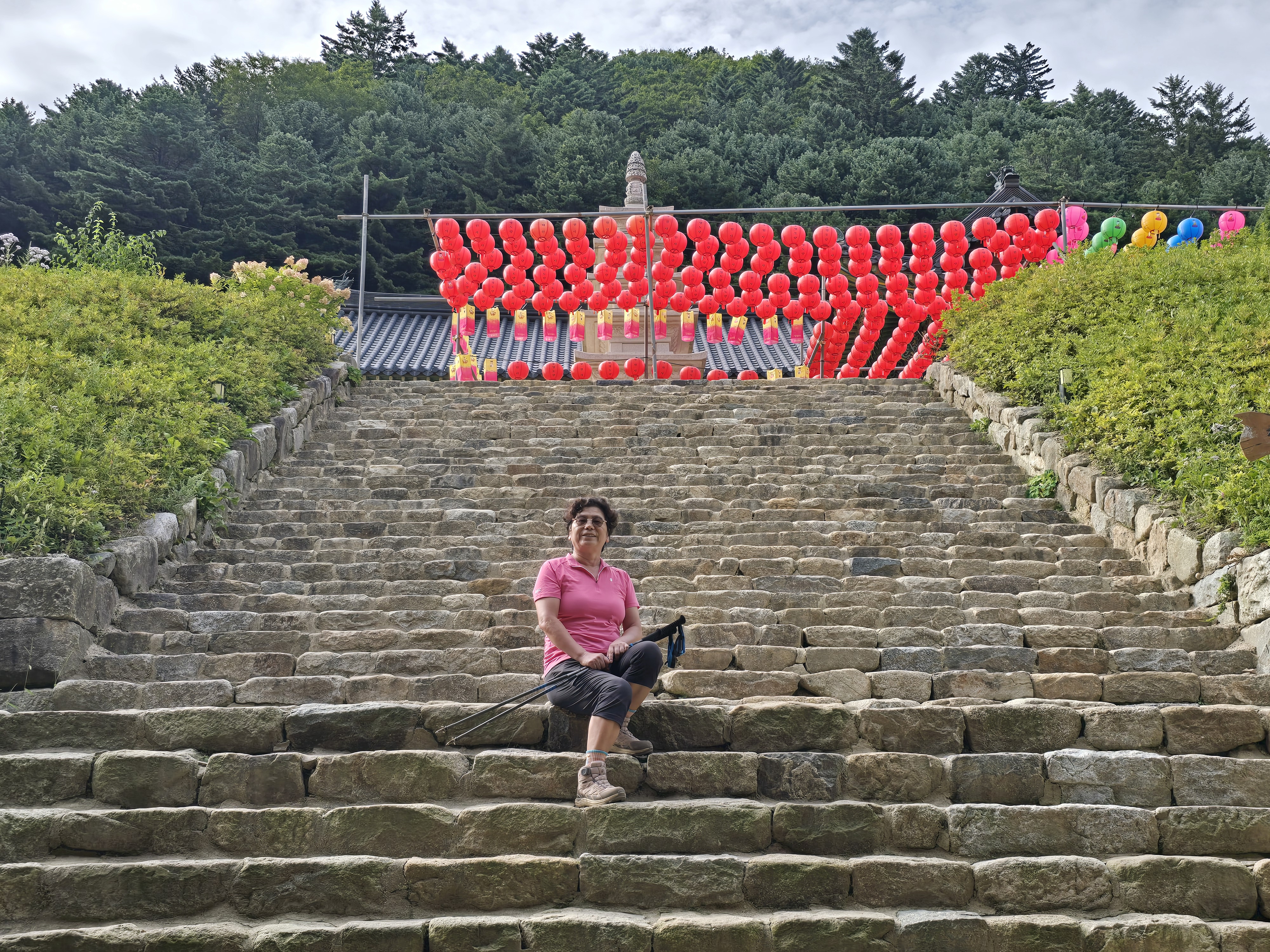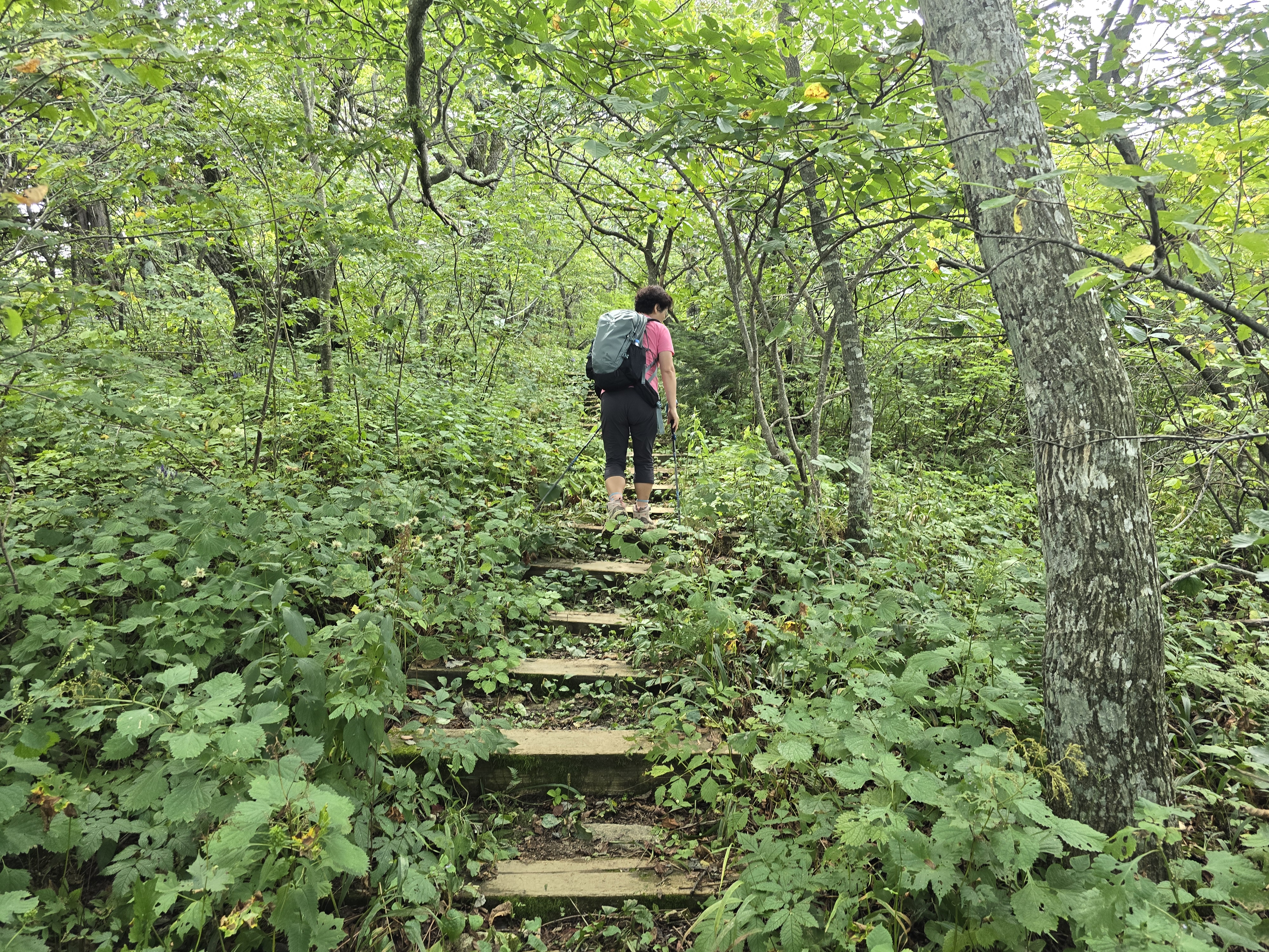 오대산 상원사 주차장에서 북대미륵암 두로령 두로봉 상왕봉 비로봉 적멸보궁 상원사 주차장으로 원점회귀하였다. 완만한 임도 길을 따라 올라가다가 보니 산길로 오르는 길이 보여 등산로를 따라 올라 갔다. 경사가 가팔랐지만, 여름 숲 속의 향기를 그대로 느낄 수 있어 좋았다. 다시 임도를 만나니 북미륵암이 가까웠다. 북미륵암에 들러 영산전을 구경하고 두로봉에 갔다가 다시 상왕봉으로 돌아왔다. 가파른 경사길을 여름 날씨 속에 걷기는 힘들었다. 여름 야생화는 아직 피어있고 가을 야생화도 벌써 피어 야생화 보는 재미로 힘든 산행을 이어갔다. 여름 산행은 역시 힘들어!!! 드디어 오대산 정상 비로봉. 정상에서 전망을 즐기고 상원사를 향해 내려왔다. 역시 경사는 급했다. 그래도 내려오니 올라갈 때보다 힘들지는 않았다. 상원사를 구경하고 주차장으로.
