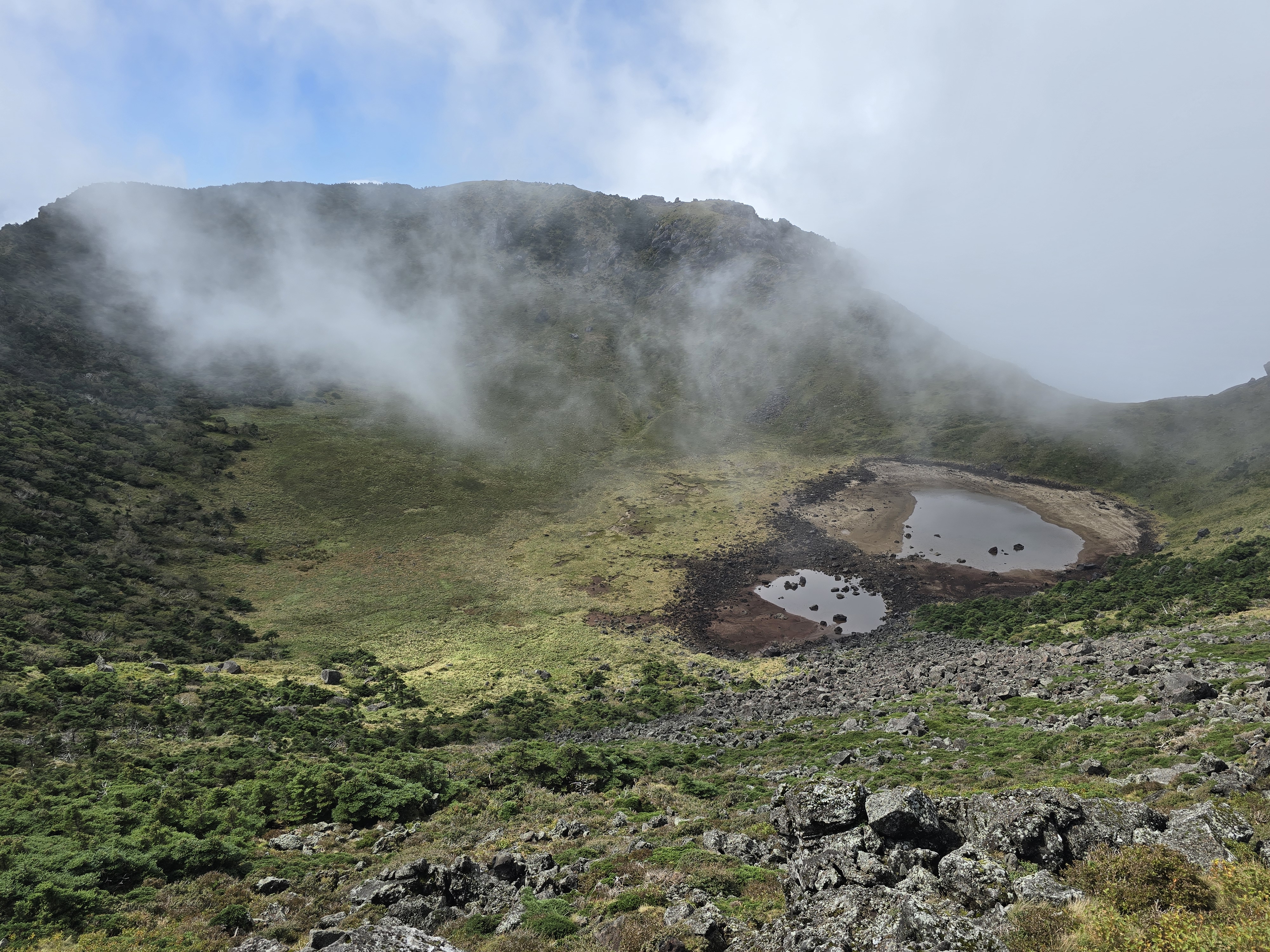 구름이 백록담을 보였줬다 숨겨다를 반복했다.