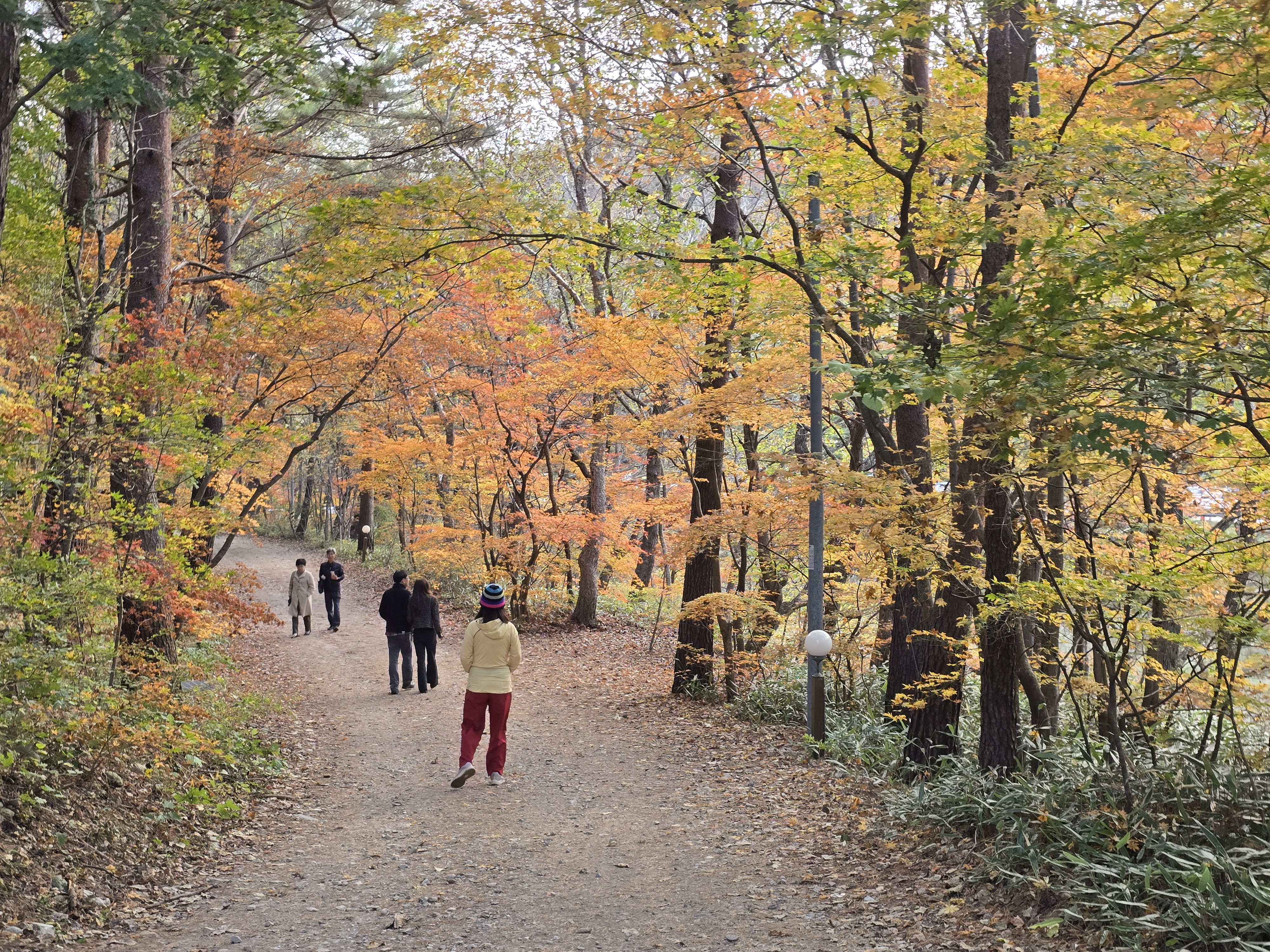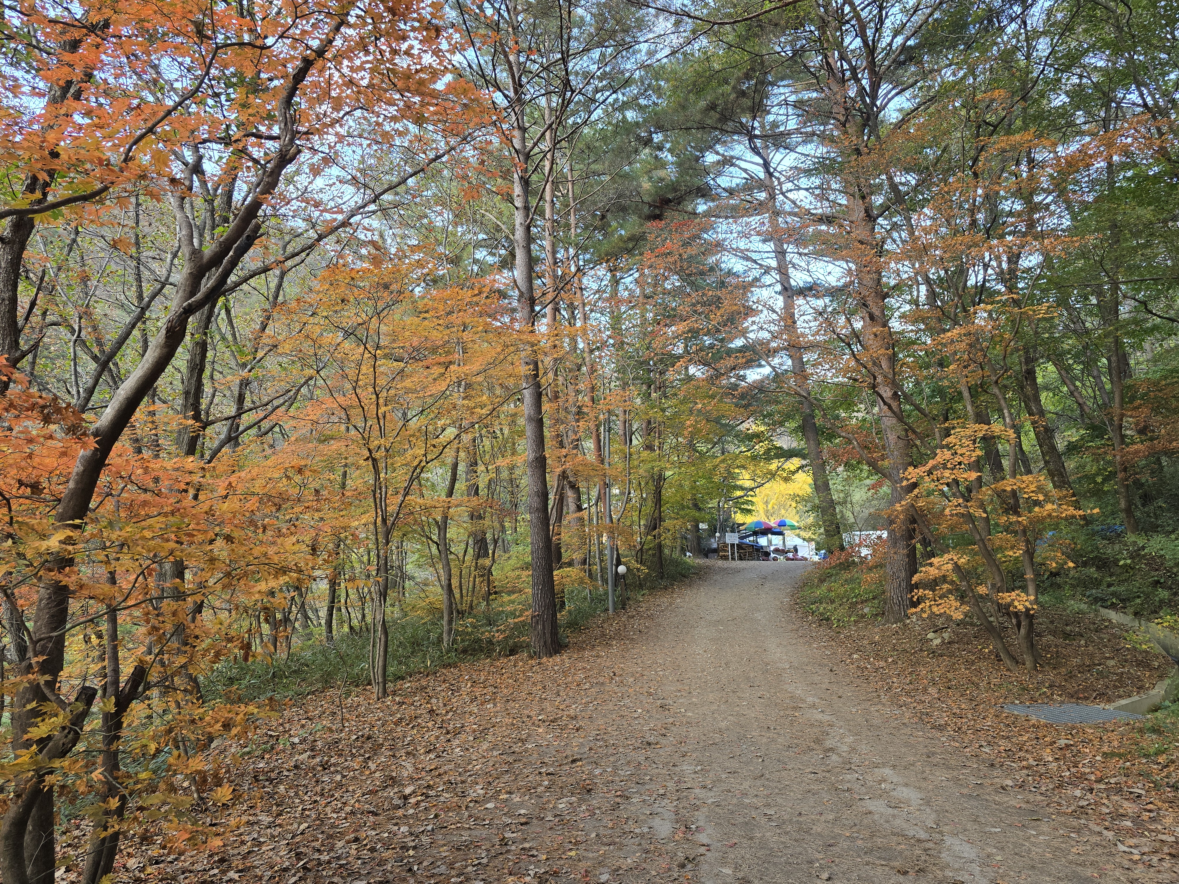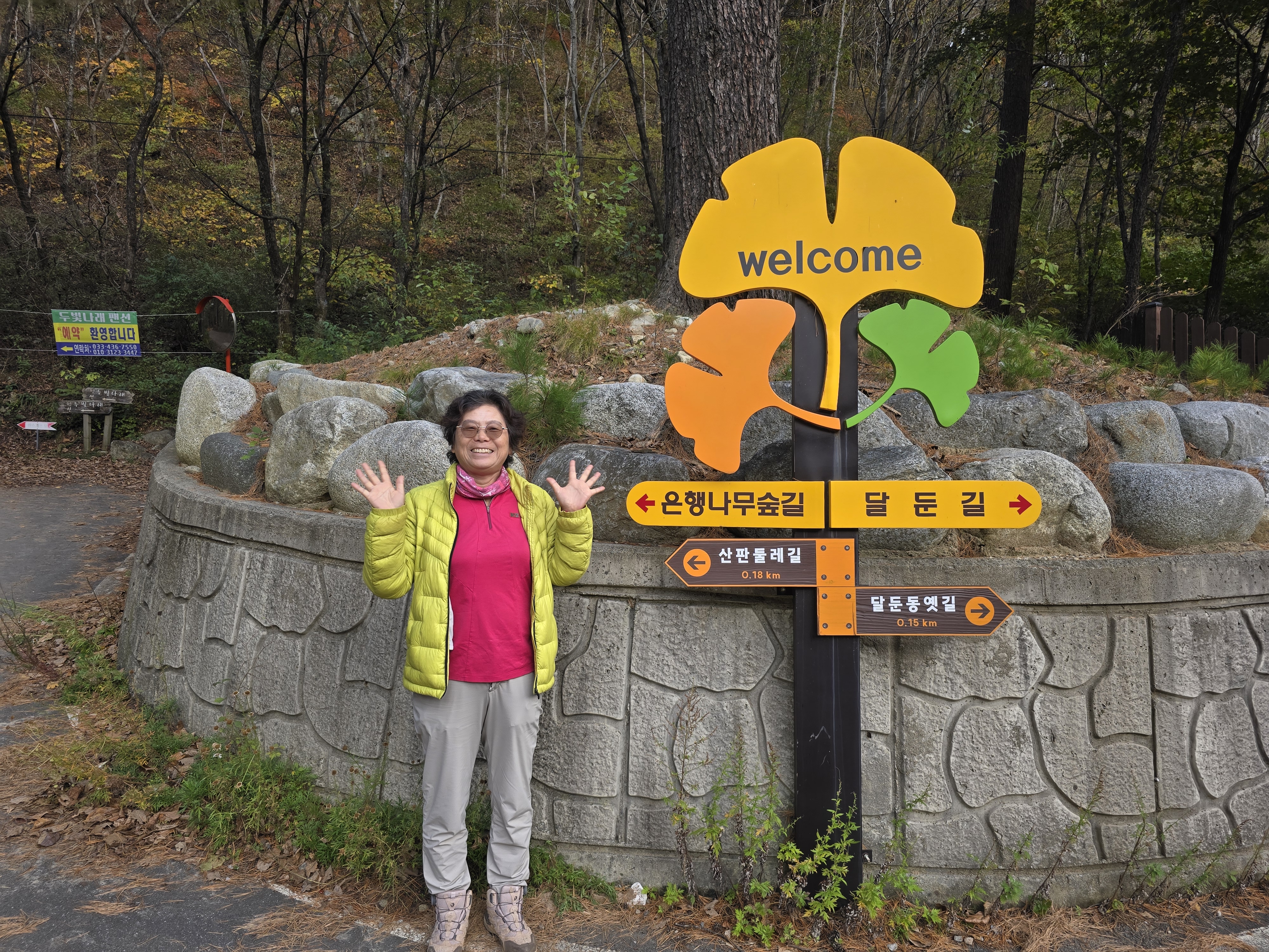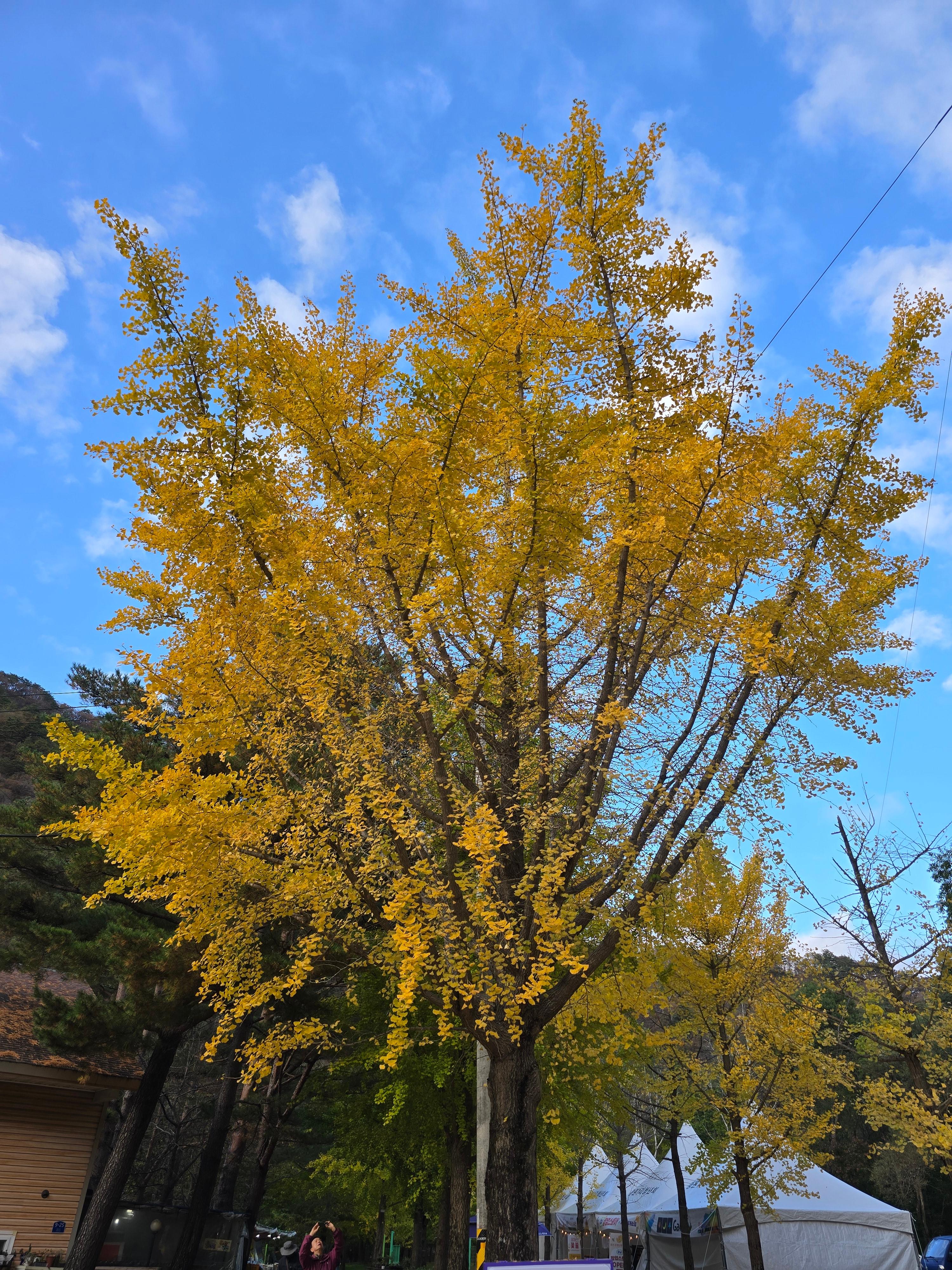 가을이 되어 단풍을 검색하면 어느 날부터 떠오르는 곳이 홍천 은행나무 숲이어서 가보고 싶었는데 너무 오지라 가기가 쉽지 않았는데 퇴직을 하고 시간이 많아 삼봉자연휴양림을 예약하고 찾아갔다. 단풍적기라 생각하고 갔는데 올해는 너무 더워 늦게 단풍이 들어 조금 물이 덜 들었지만 은행나무 숲 정취는 그대로 느낄 수 있었다. 초록 은행잎이 하나하나 노란 꽃잎이 되어가는 아름다운 순간들을 볼 수 있어 좋았다. 은행나무 숲 입구와 강변의 붉은 단풍나무는 한창이였다. 오면 가면 2번이나 찾아 은행나무 숲 구석구석을 둘러보면서 은행나무숲의 따뜻한 이야기와 함께 행복한 시간을 가졌다.