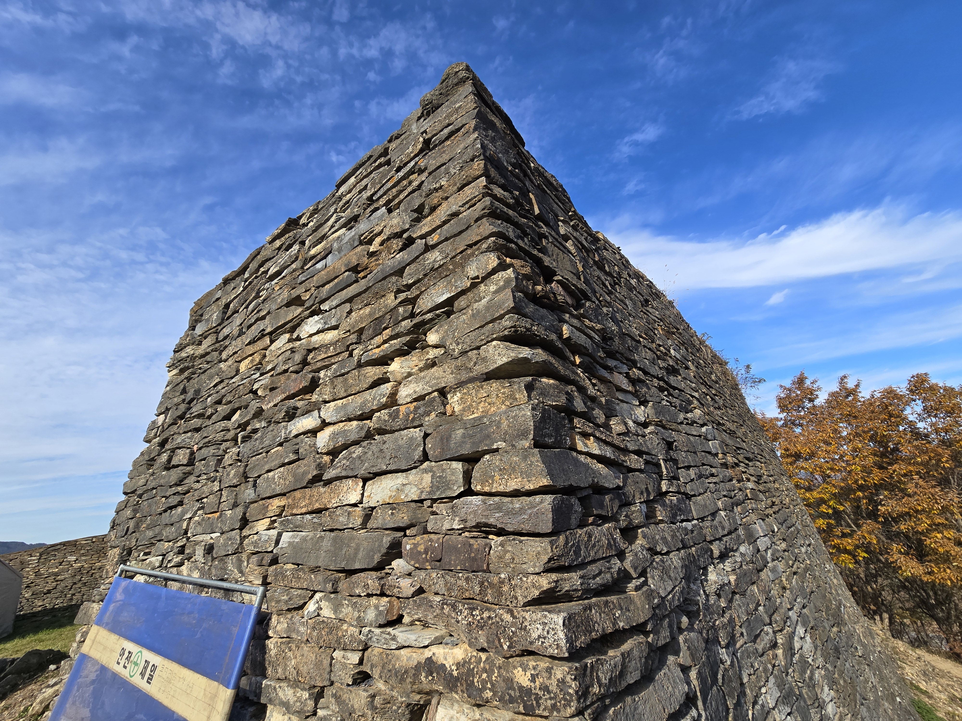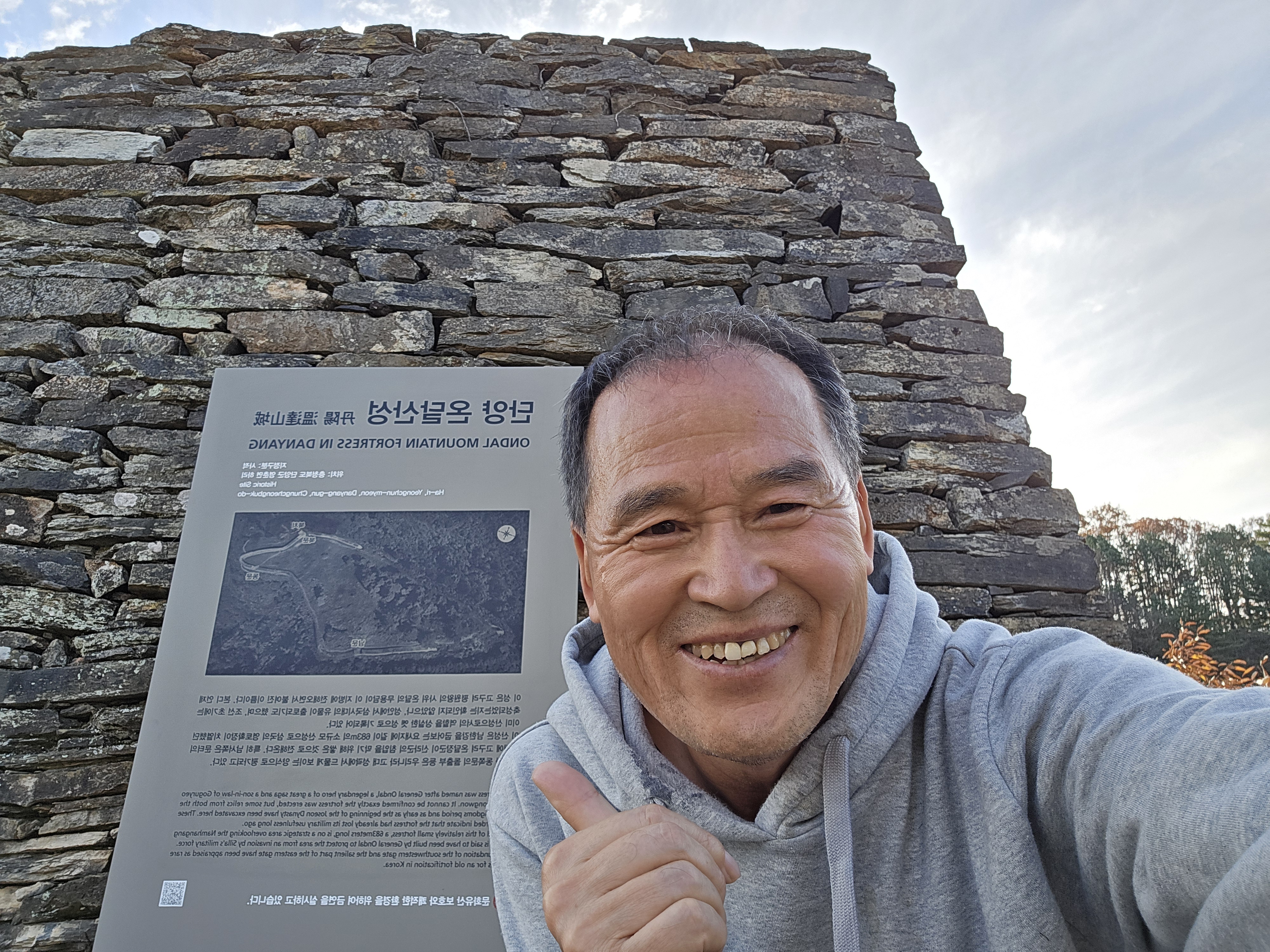 한벽루 인증을 마치고 시간이 될 것 같아 온달산성을 찾았다. 지난번 여름에 찾아왔을 때는 몹시 덥고 힘든 기억이 있었는데 온달산성 주차장에서 1km 거리지만 거의 계단이다. 힘들게 쉬엄쉬엄 온달산성에 올라서니 남한강 전망이 좋다 산성은 공사를 하고 있었다. 이렇게 높은 산 위에 성을 쌓다니. 역시 생존을 위한 인간의 노력은 위대해. 산성 밑을 흐르는 남한강 강물을 내려다보면 인간의삶의 유한성과 자연의 영속성을 생각해보았다.
