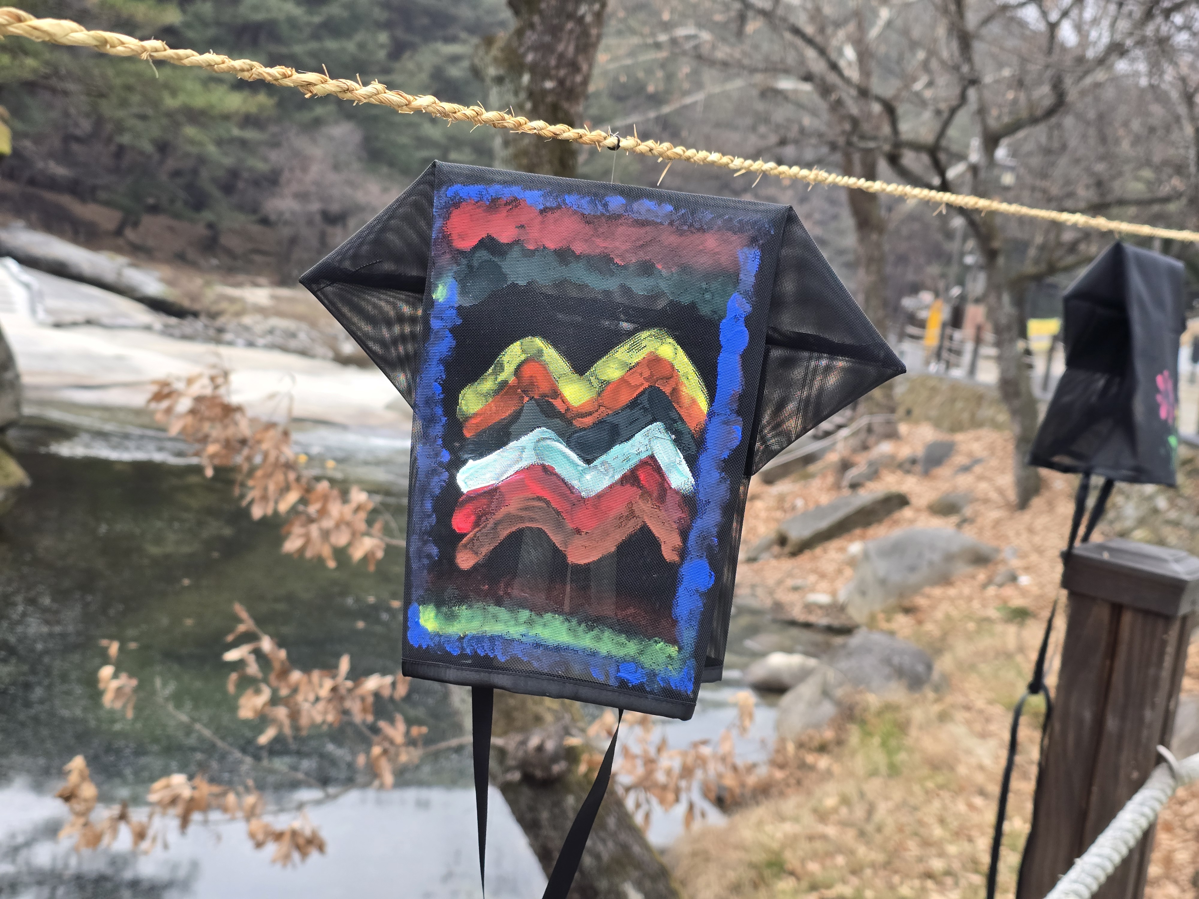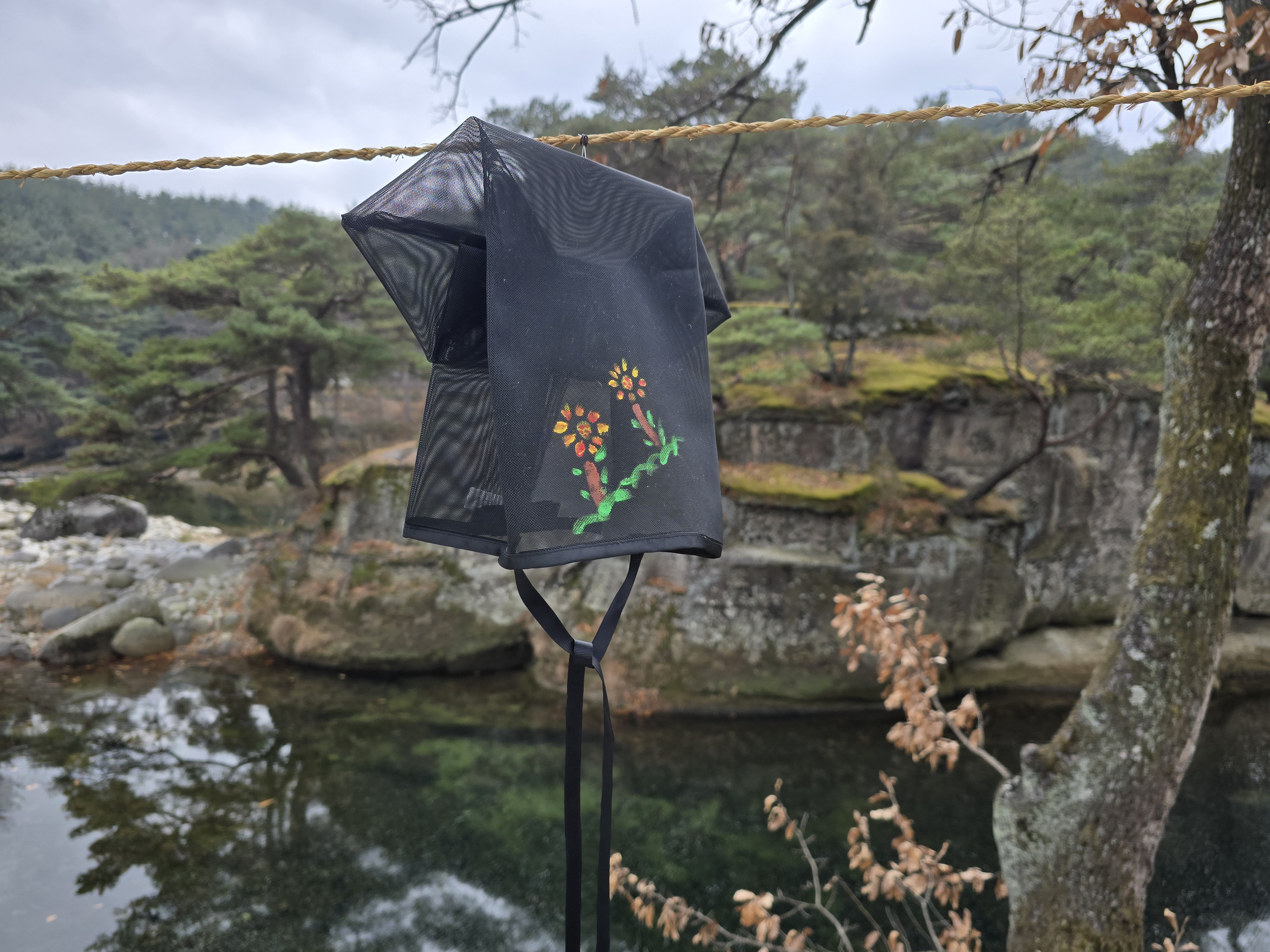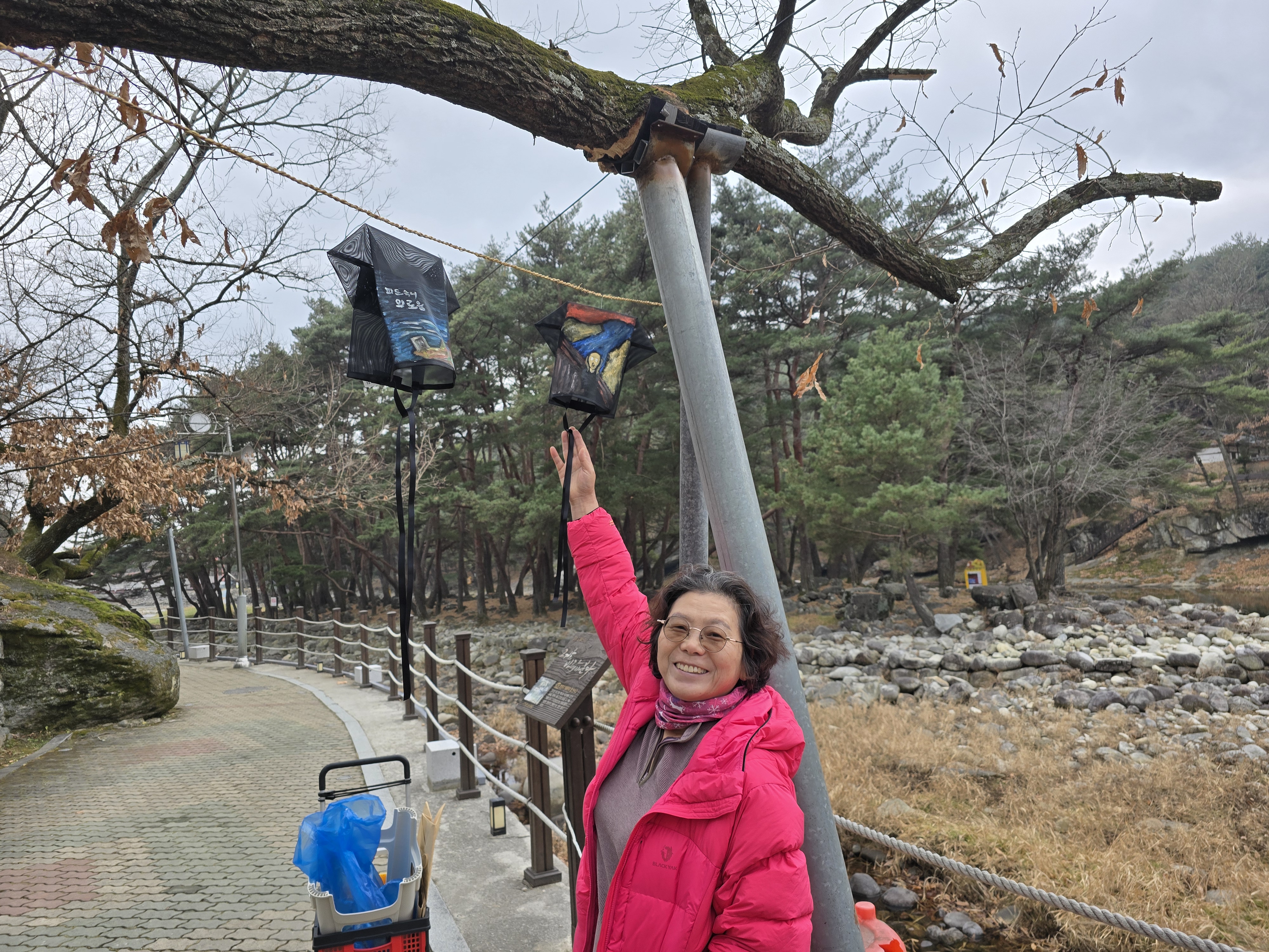 옛날 갓에 그림을 그려 전시하고 있었다.