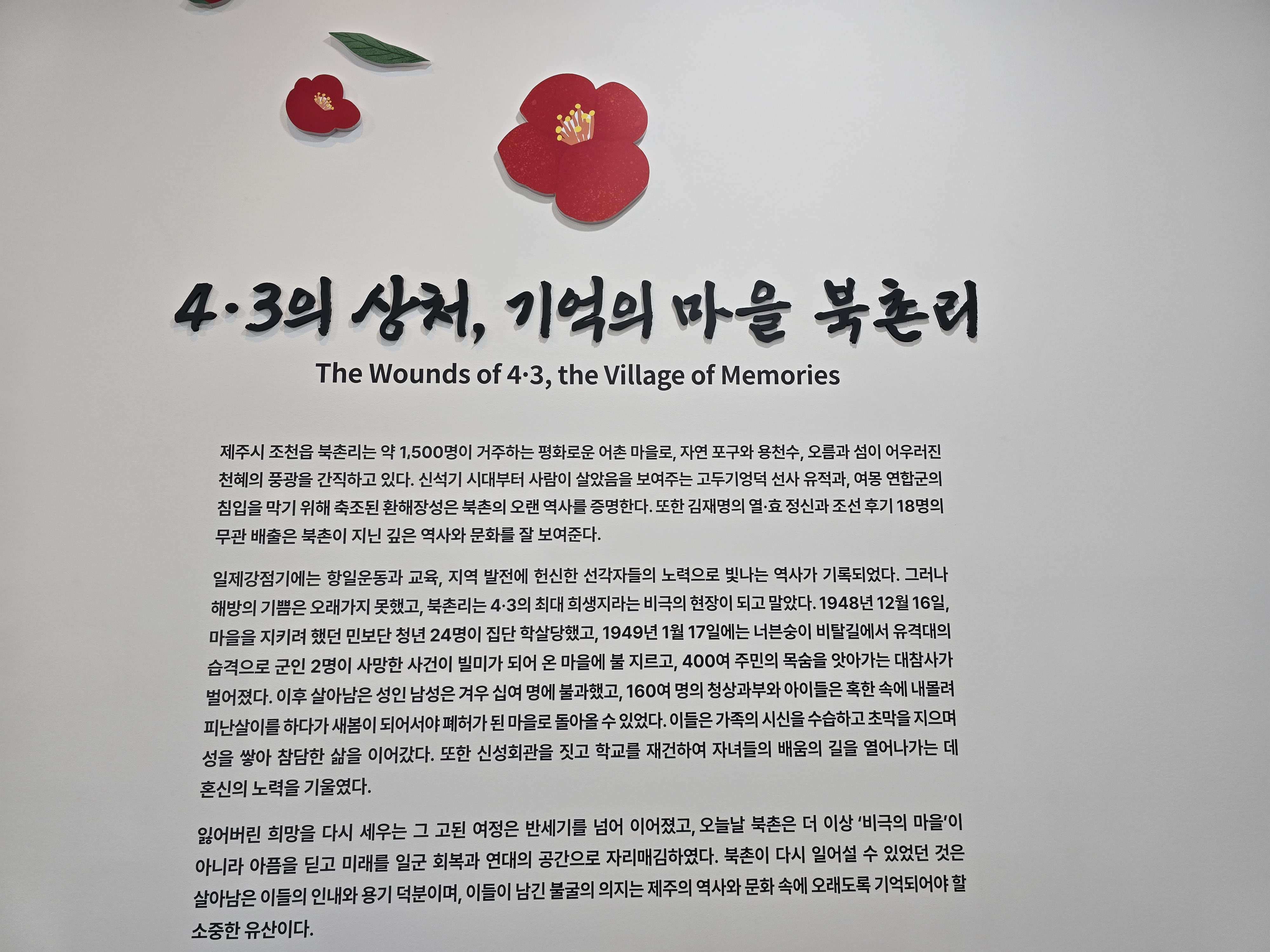 역사문화대장정 제주 4.3사건 중 가장 상처가 많이 남아 있는 북촌 너븐숭이에는 기념관과 위령비 순이삼촌 애기무덤 등 유적이 있다.