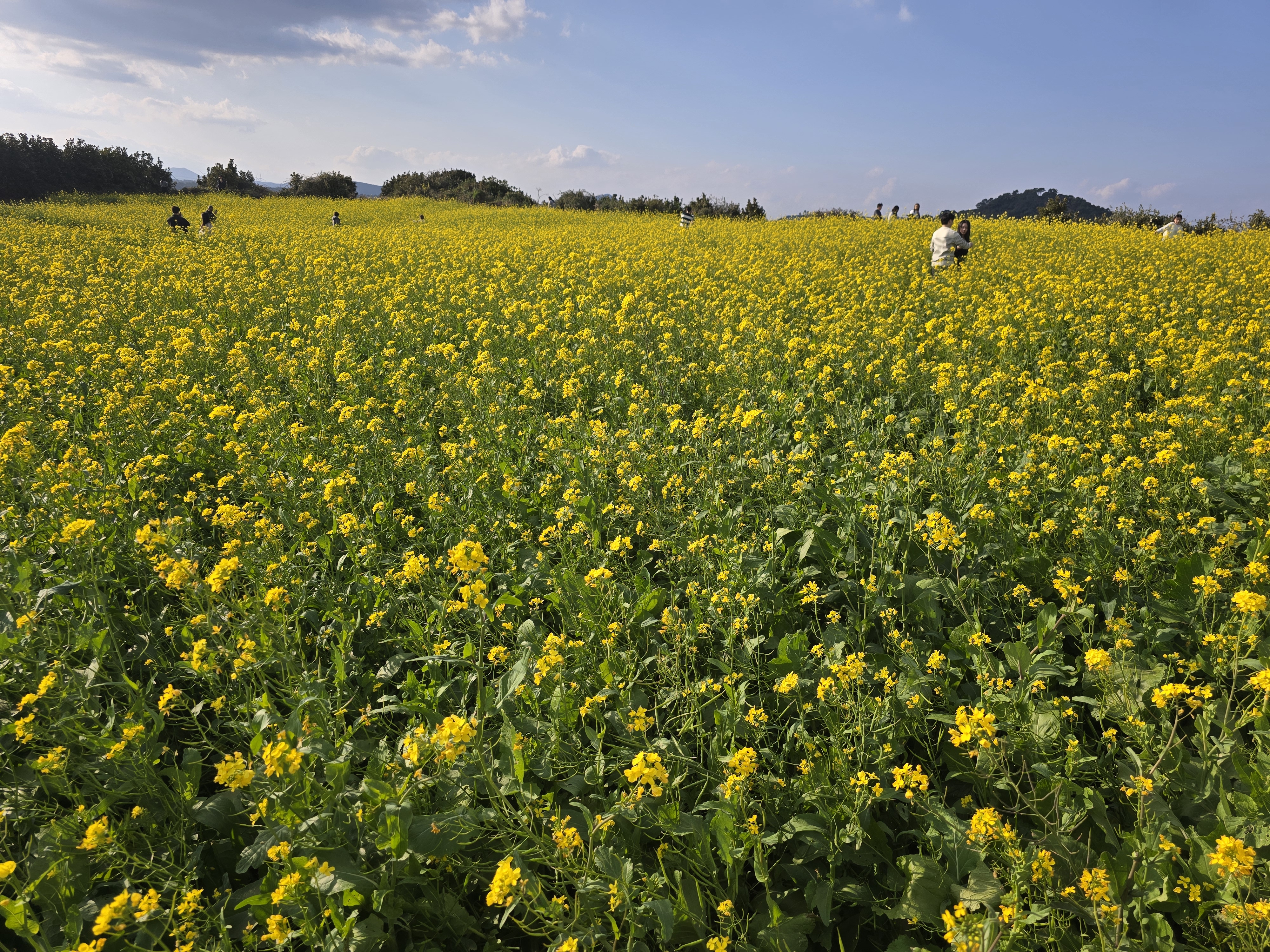 12월 말에 동백꽃이 핀다하여 제주도를 찾아다가 유채꽃을 볼 수 있다고 하여 찾아갔다. 12월 임에도 유채꽃이 활짝 피어있었다. 많은 사람들이 노오란 유채꽃밭에서 사진을 찍고 있었다. 우리도 유채꽃밭을 산책하면서 포인트에서 사진을 찍었다. 겨울속의 향그로운 봄여행이라 즐거웠다. 추운 한겨울에도 유채꽃이 피는 제주도에 다뜻하게 살고 싶어진다.